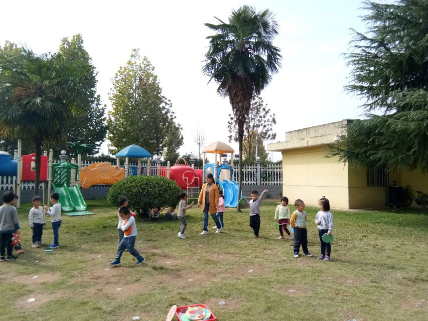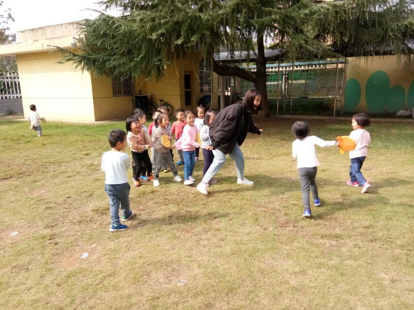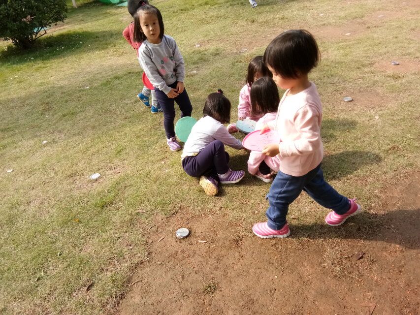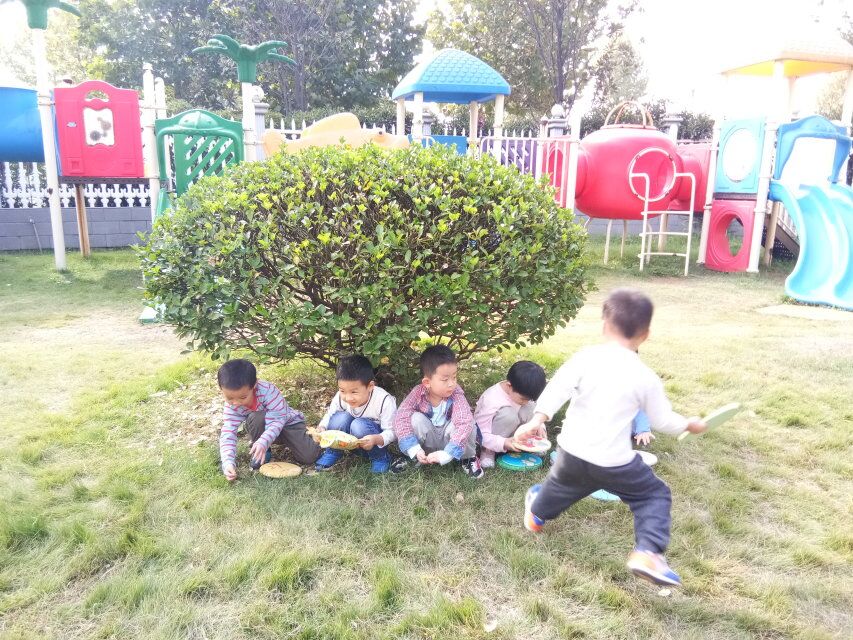而今天难得出了太阳,草地上都干了,宝贝们练习了好几天,正想让宝贝们放松一下,出去好好玩一玩。于是老师带着宝贝们去草地上玩扔飞盘,一出来见到阳光,宝贝们都很兴奋,等不及的想要开始游戏了。有的小朋友在玩扔飞盘;有的小朋友在玩小鱼小鱼快快游;有的小朋友在玩老鹰捉小鸡;还有的小朋友闻到了桂花香,正拿着飞盘当碟子,在捡桂花呢!还有一些小朋友躲在小树下,老师过去一问,才知道原来他们在吸引怪兽呢!宝贝们的童言趣语,自在飞扬的样子,也让老师们感到心情愉悦了!
