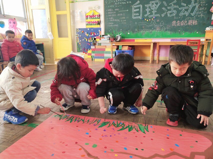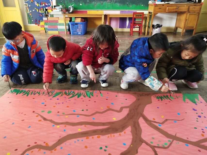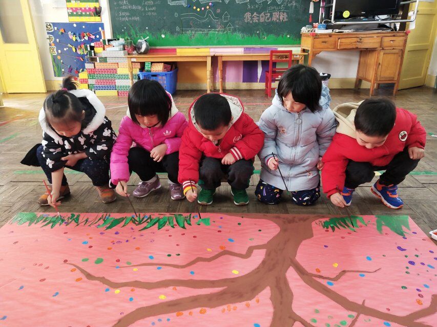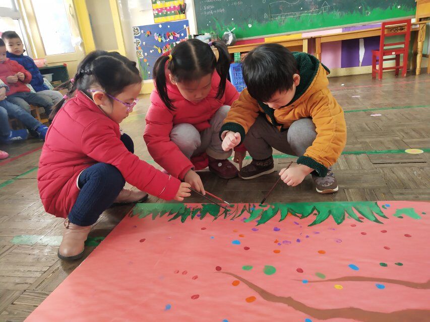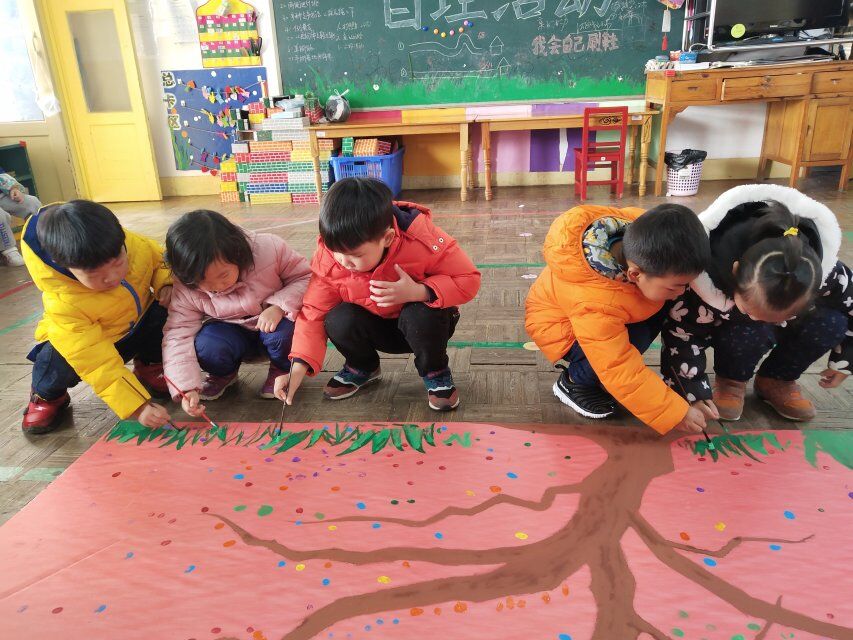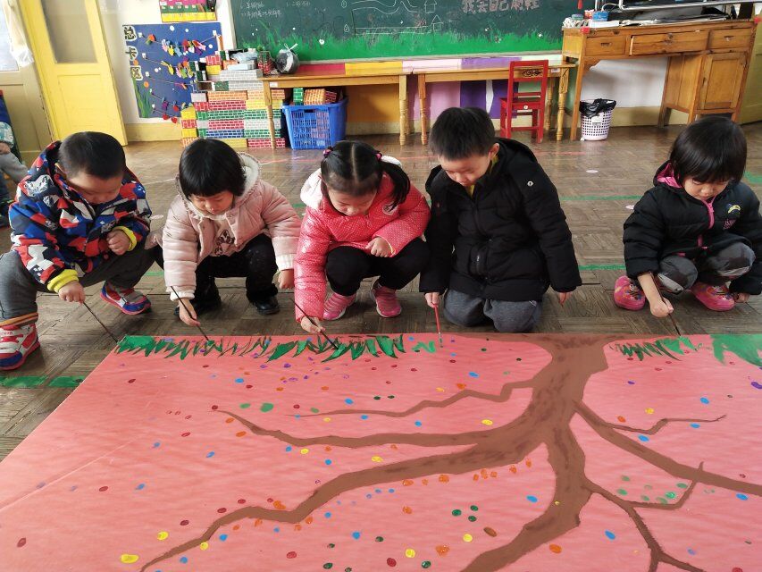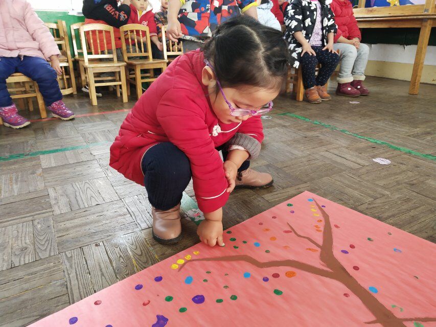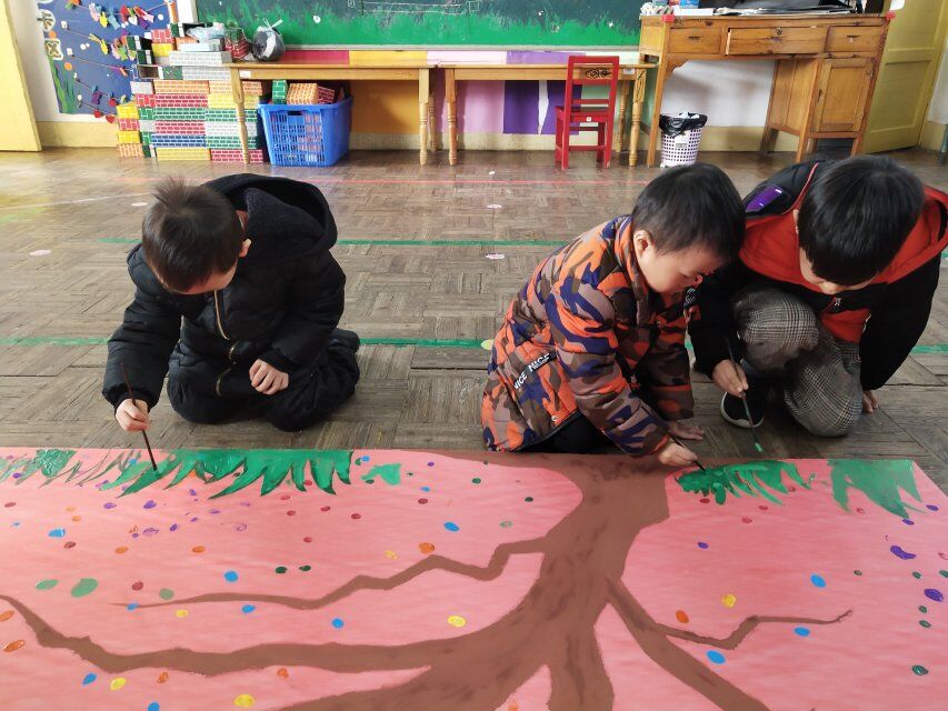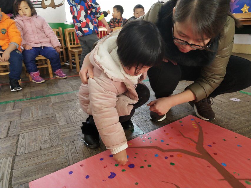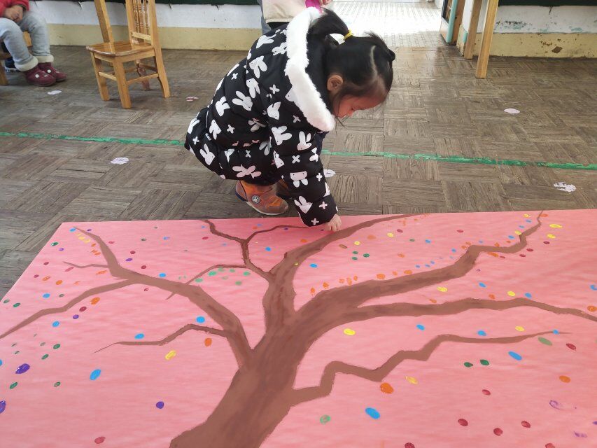 这周我们开展了一次有趣的创意绘画活动,让宝贝们和老师共同来装饰一棵“成长树”。