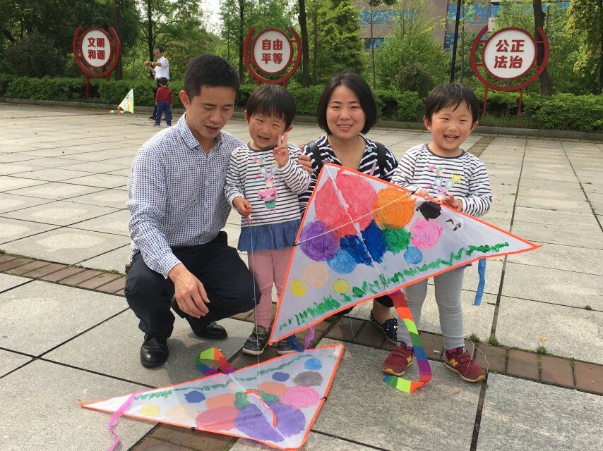 在活动前,孩子们在家和爸爸妈妈一起拿着画笔,共同用多彩颜料在风筝上涂上可爱的图案、绚丽的颜色,描绘他们心中一个个色彩纷呈、充满梦想的风筝。亲子之间的亲密合作,既充满了欢乐,也让画笔下的图案更加活灵活现。在广场上,家长与孩子一起把带有自己心愿的风筝一起放飞。