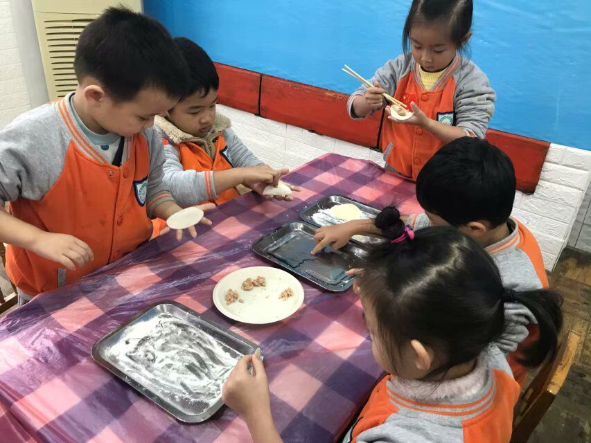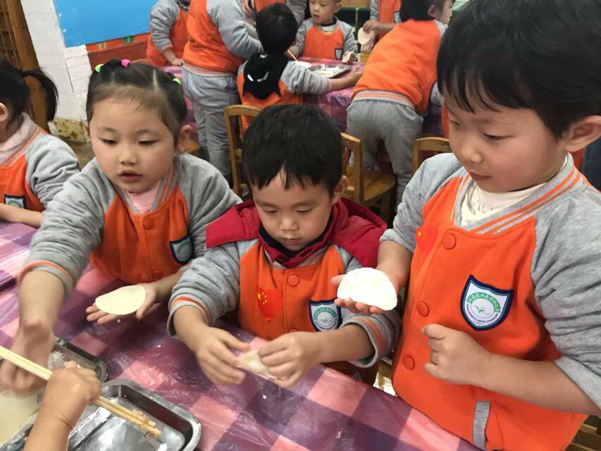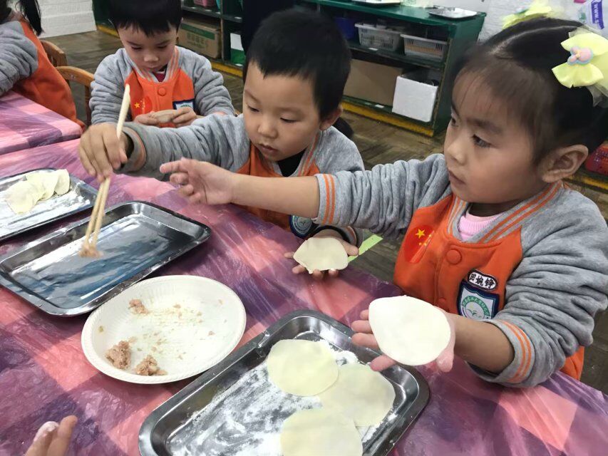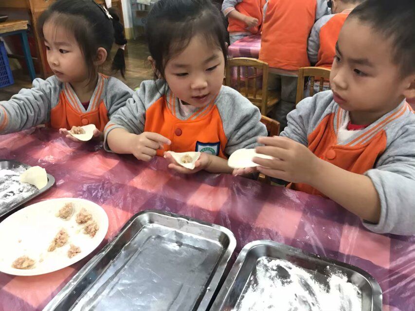 本月引导孩子在家帮助父母做家务,培养孩子的家庭责任感,同时增进亲子感情。大部分家长的反馈中孩子对于协助父母准备食材、烹饪食物方面较为主动,于是班级设计了美食活动。饺子是中国传统食品,历史悠久,营养丰富,也符合季节。为了锻炼孩子的动手能力,增长孩子的见识,培养孩子的合作与关爱之情,我们班决定以“如饺似亲”包饺子活动为美食活动的开端。让孩子们在活动中体验劳动的快乐,分享劳动成果。