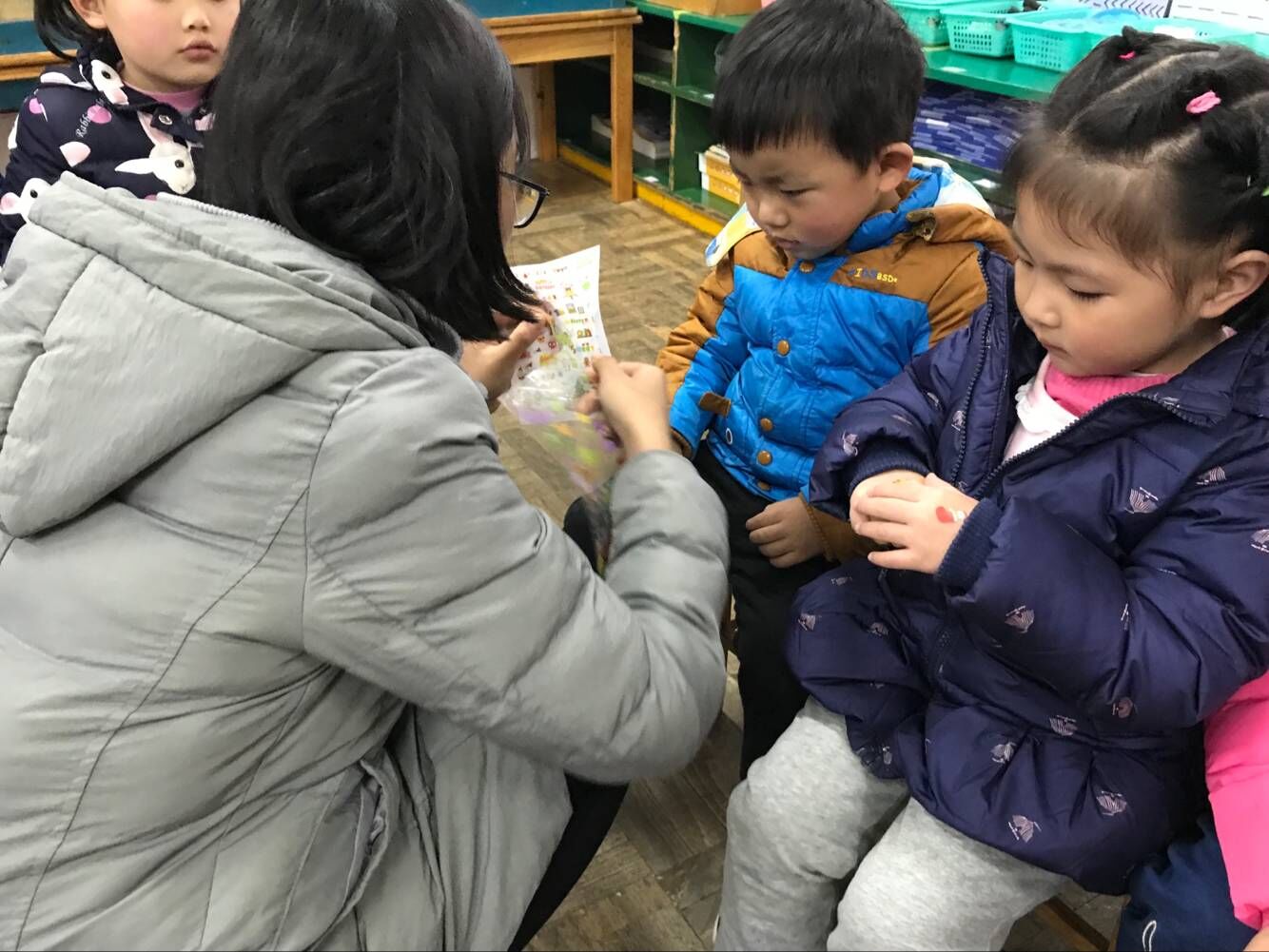 转眼间,文老师和朱老师就要离开农大幼儿园了,我们为她们带来了班歌《感谢》,谢谢她们这五天对我们无微不至的关心,文老师和朱老师还为我们准备了漂亮的贴贴纸和美味的糖果,她们也很喜欢我们!我们心中满是不舍,希望文老师、朱老师下次有机会回来看看我们,我们会想你们的哦!