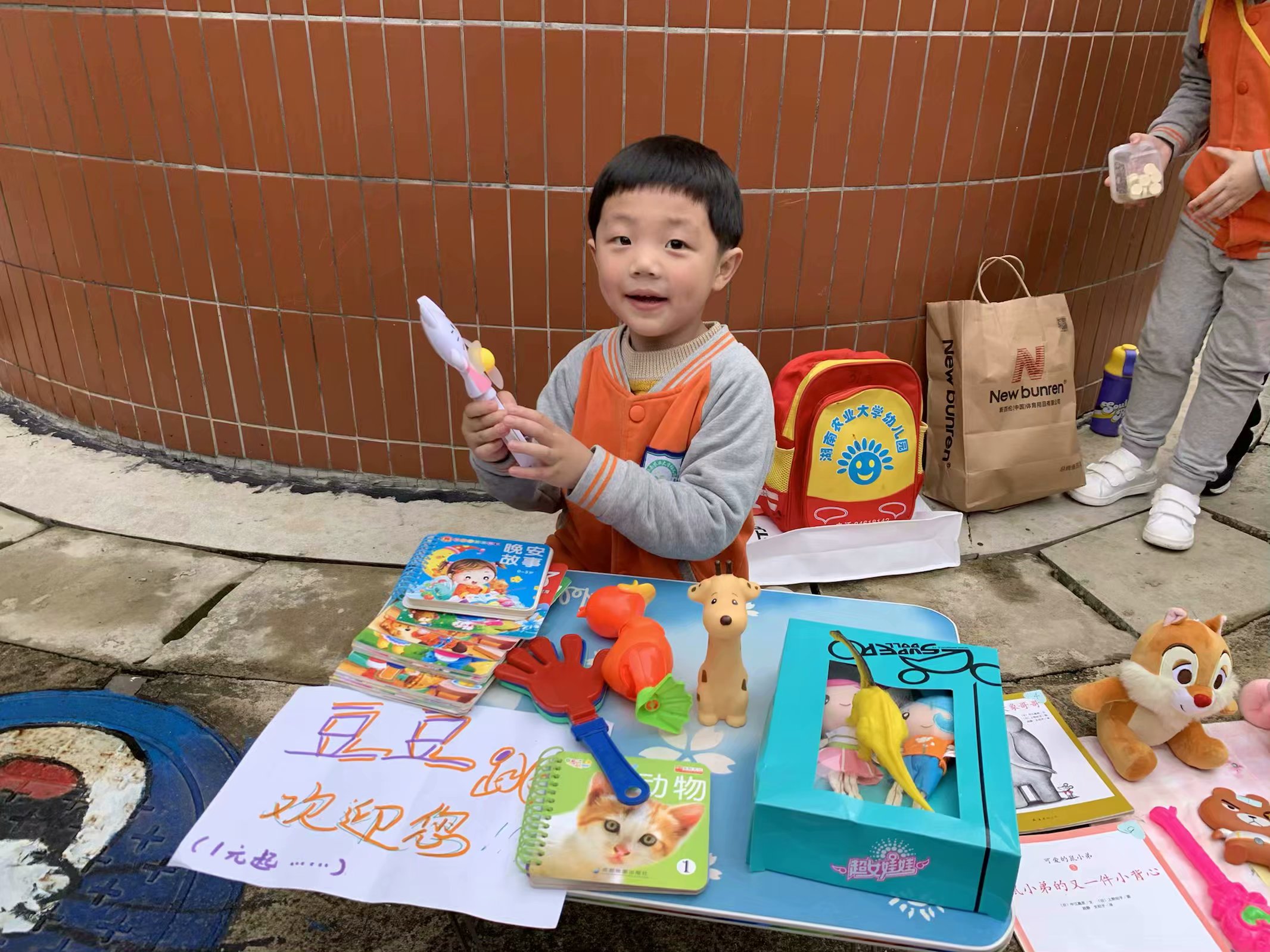 4月30日,湖南农业大学幼儿园里人流涌动,热闹非凡,叫卖声不绝于耳。这里传出的叫卖声是幼儿园孩子们的,他们的“跳蚤市场”开市了。