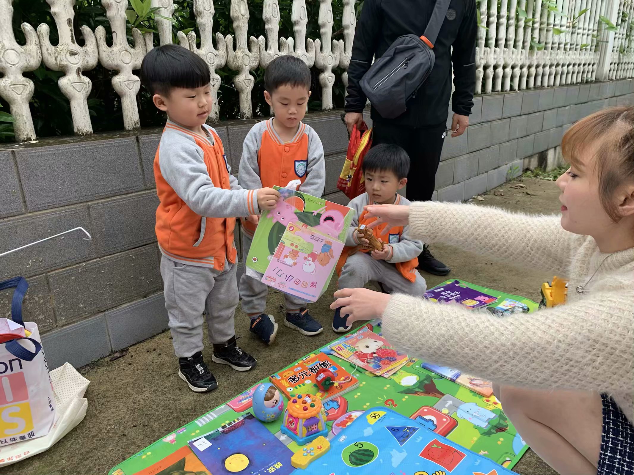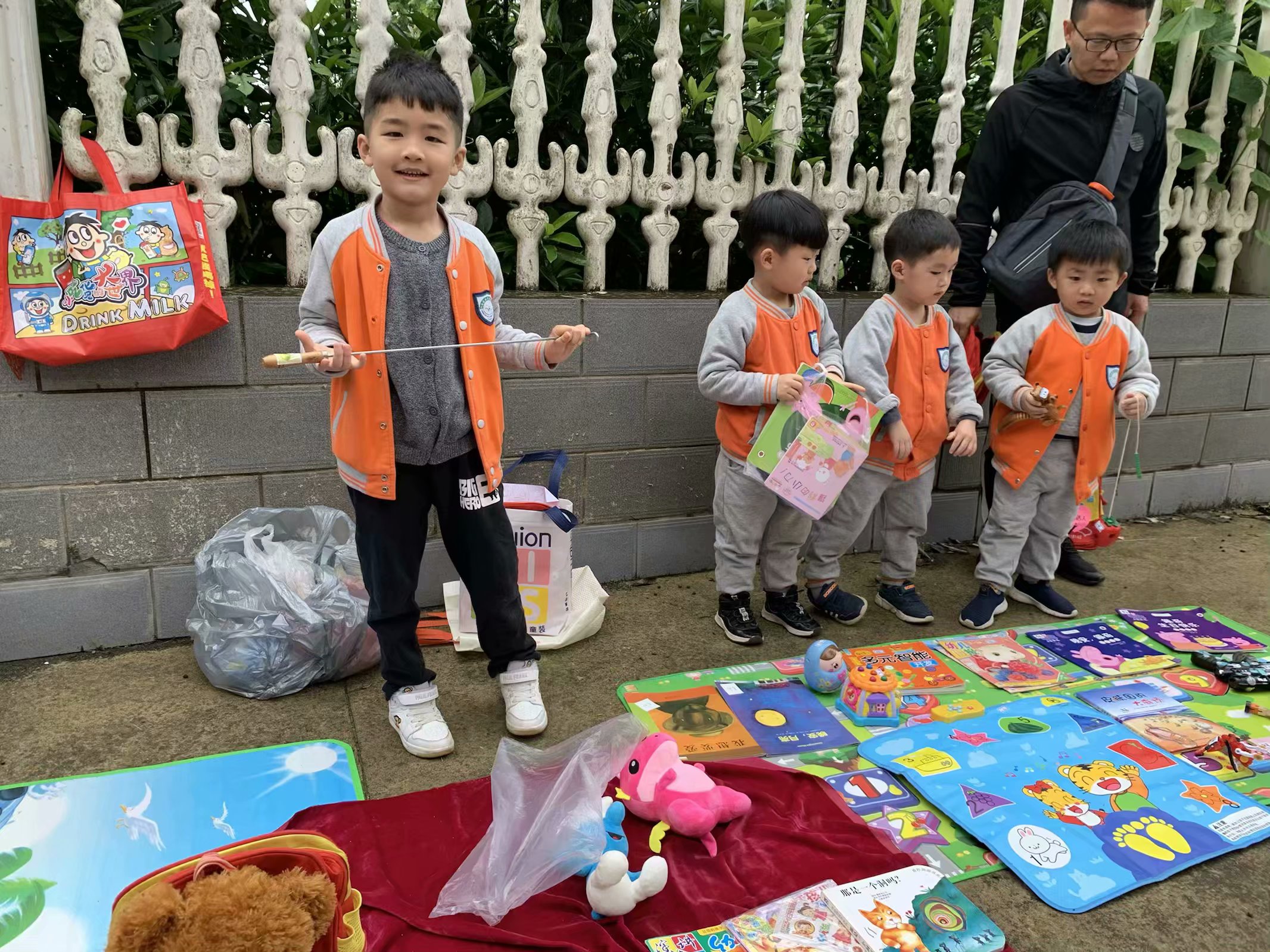 在跳蚤市场中,孩子们个个积极参与,一个个“摊位”各有特色。幼儿图书、学习用品、玩具、小饰品、零食等商品玲琅满目。小朋友坐在自己的摊位前,纷纷扮演起老板的角色,热情地向往来的小顾客推销自己的商品,招揽生意;有的小朋友跟着爸爸妈妈则游走在各个摊位之间,认真地挑选自己中意的商品,向他人购买。