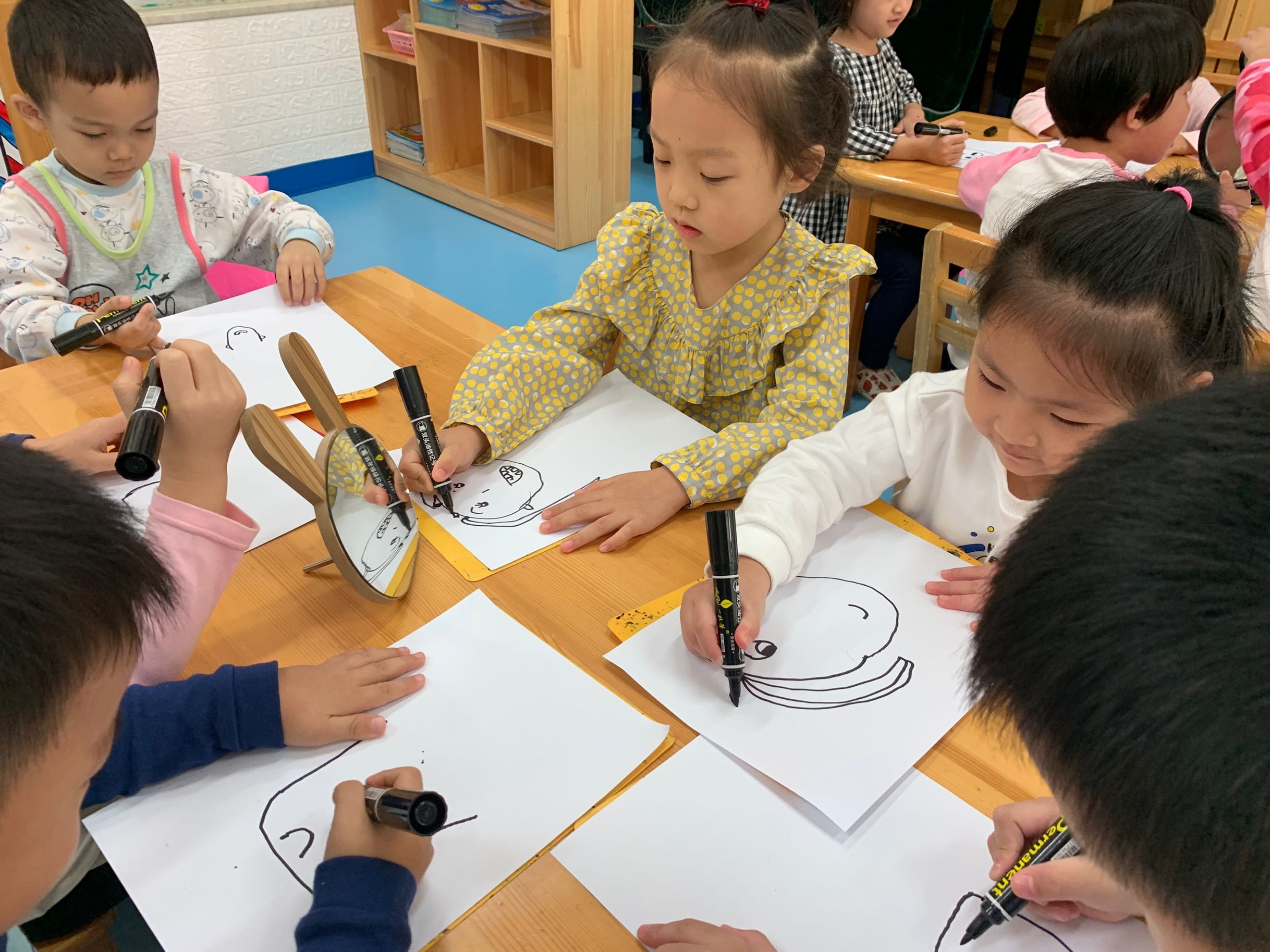 孩子们在画过许多次他人的画像后,今天开始尝试画自己了。虽然是最熟悉的人,但自己究竟有什么特点呢?不少小朋友不能完整的说出自己独一无二的地方,当老师展示出今天的秘密道具,孩子们顿时兴奋起来!照镜子,是我们几乎每天都会做的事情,但是否有认真看过镜子里的自己是什么样呢?