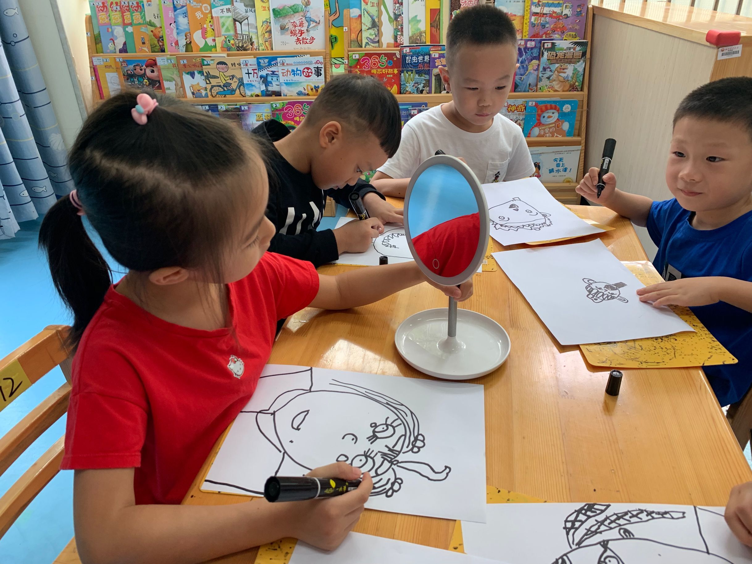 今天的孩子们镜子照得格外仔细!脸上哪里有颗痣、哪里有胎记、哪里被蚊子咬了都看得清清楚楚,在仔细观察完镜子中的自己后,孩子们拿起了画笔描绘着自己的画像,“我有点紧张,我怕把自己画丑。”“哈哈,我肯定要把自己画得非常好看,嘴巴要像涂了口红那么漂亮!”欢乐的美术活动使孩子们更加了解自己,开心的笑脸一一展现在画纸中。