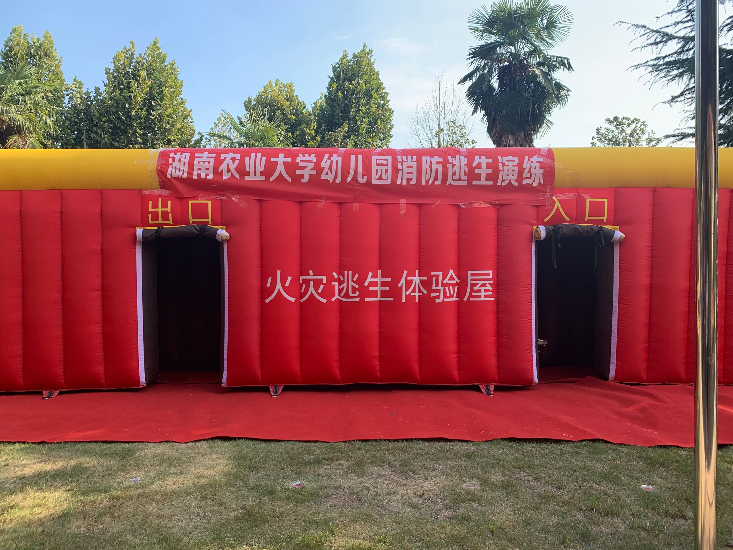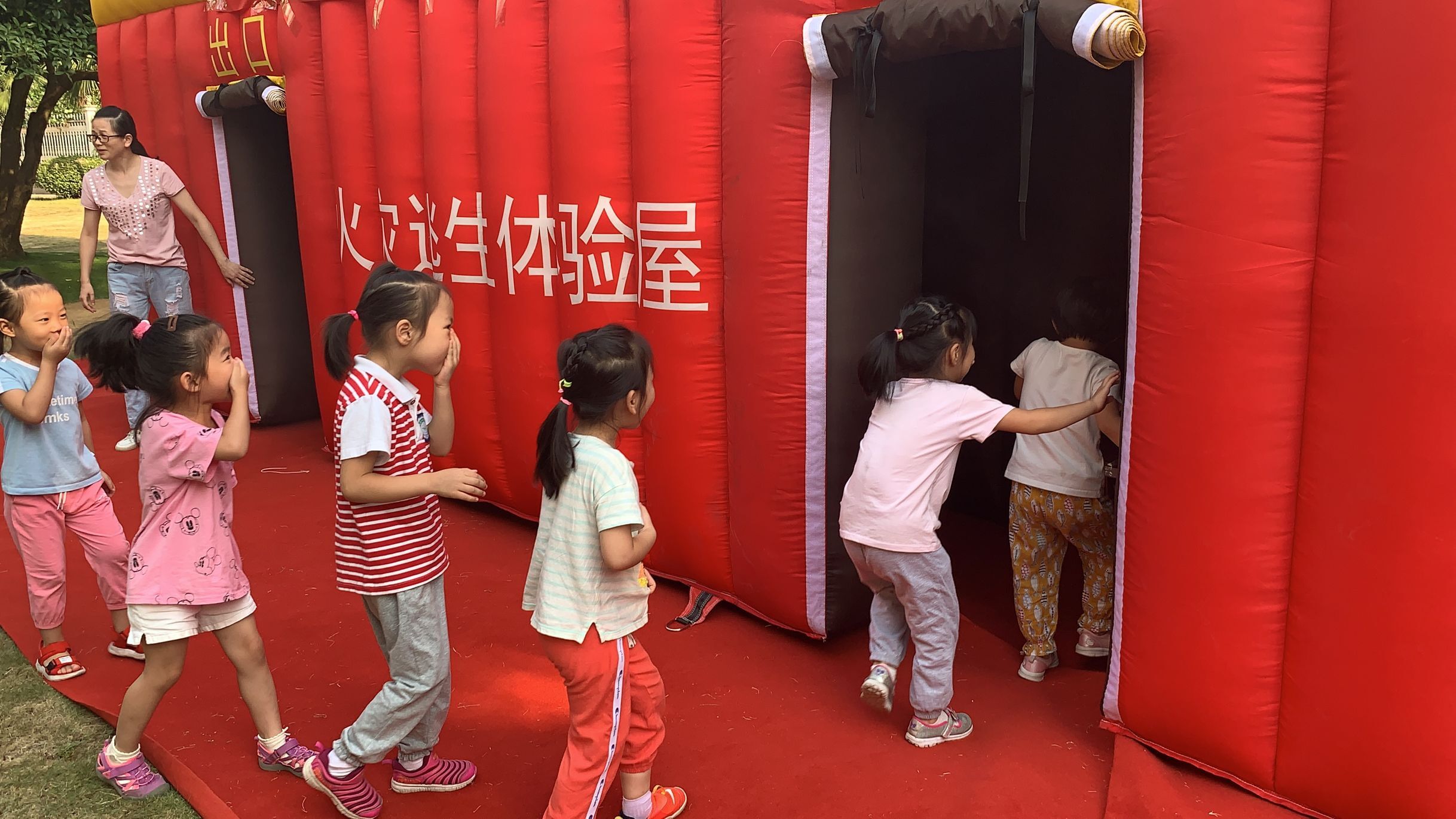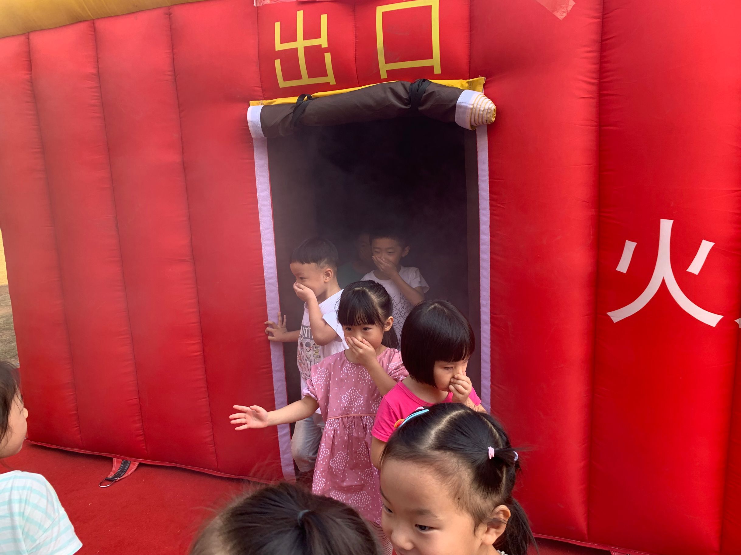 今天下午幼儿园举行了安全消防演练—火灾逃生体验,与以往不同的是,本次消防保卫处带来了一个特别的消防器材“火灾逃生体验屋”。体验屋只有进出两个门口,里面漆黑一片,帐篷里制造出大量对人体无害的浓烟。在没有照明、浓烟密布的情况下,“逃”出火灾现场。通过模拟火灾逃生帐篷的演练,不仅演练了捂上口鼻,低下身体逃离火场的技能,还体验到了着火时自身慌乱的情绪。这种身临其境的演练让人感觉印象深刻且并进一步巩固孩子们的安全意识、了解面对危险时的逃生方法。