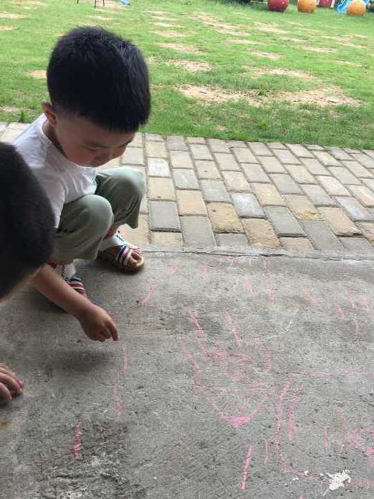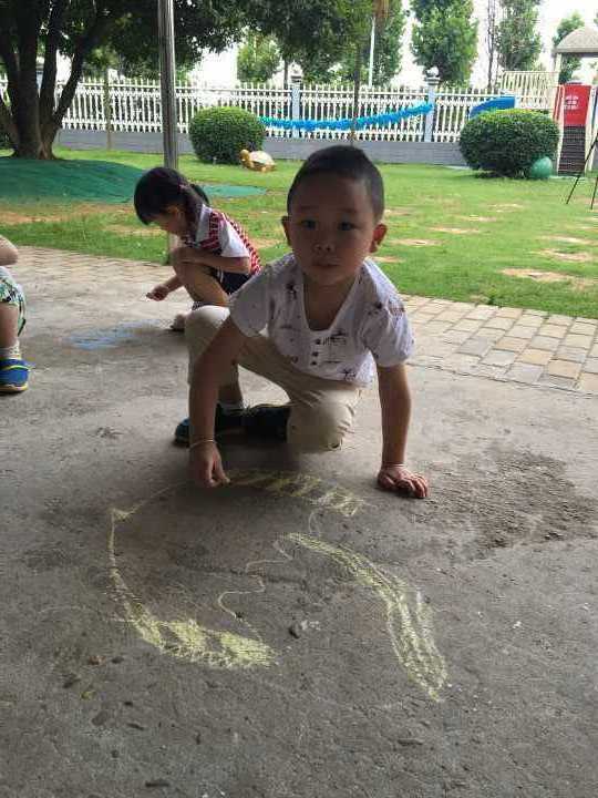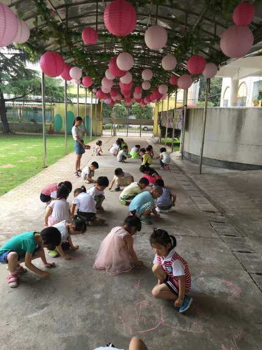 今天,老师带着中三班的小朋友们来到户外的水泥地,