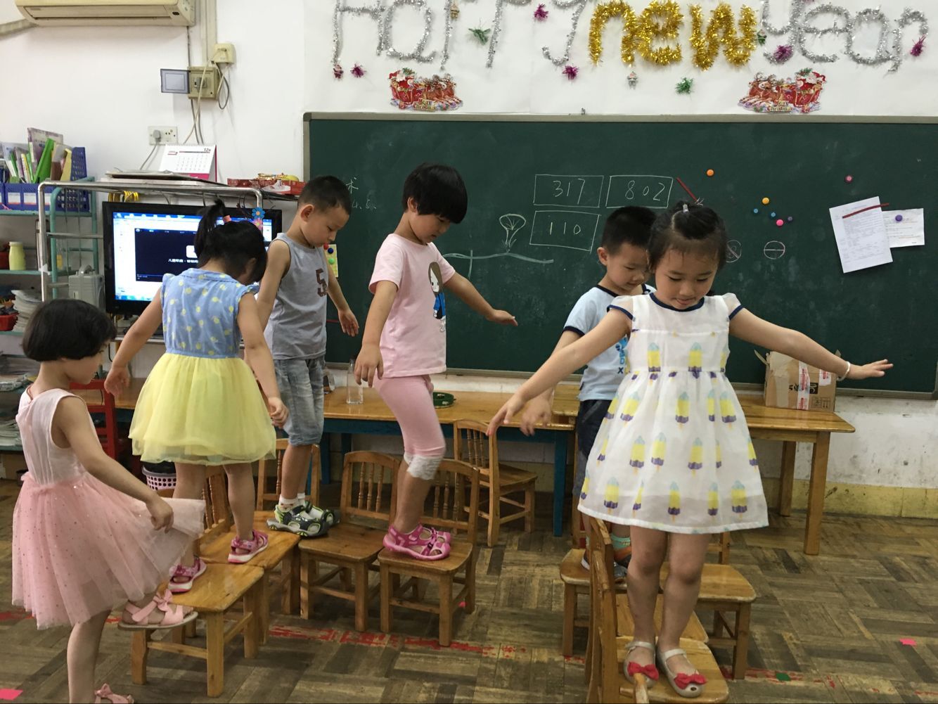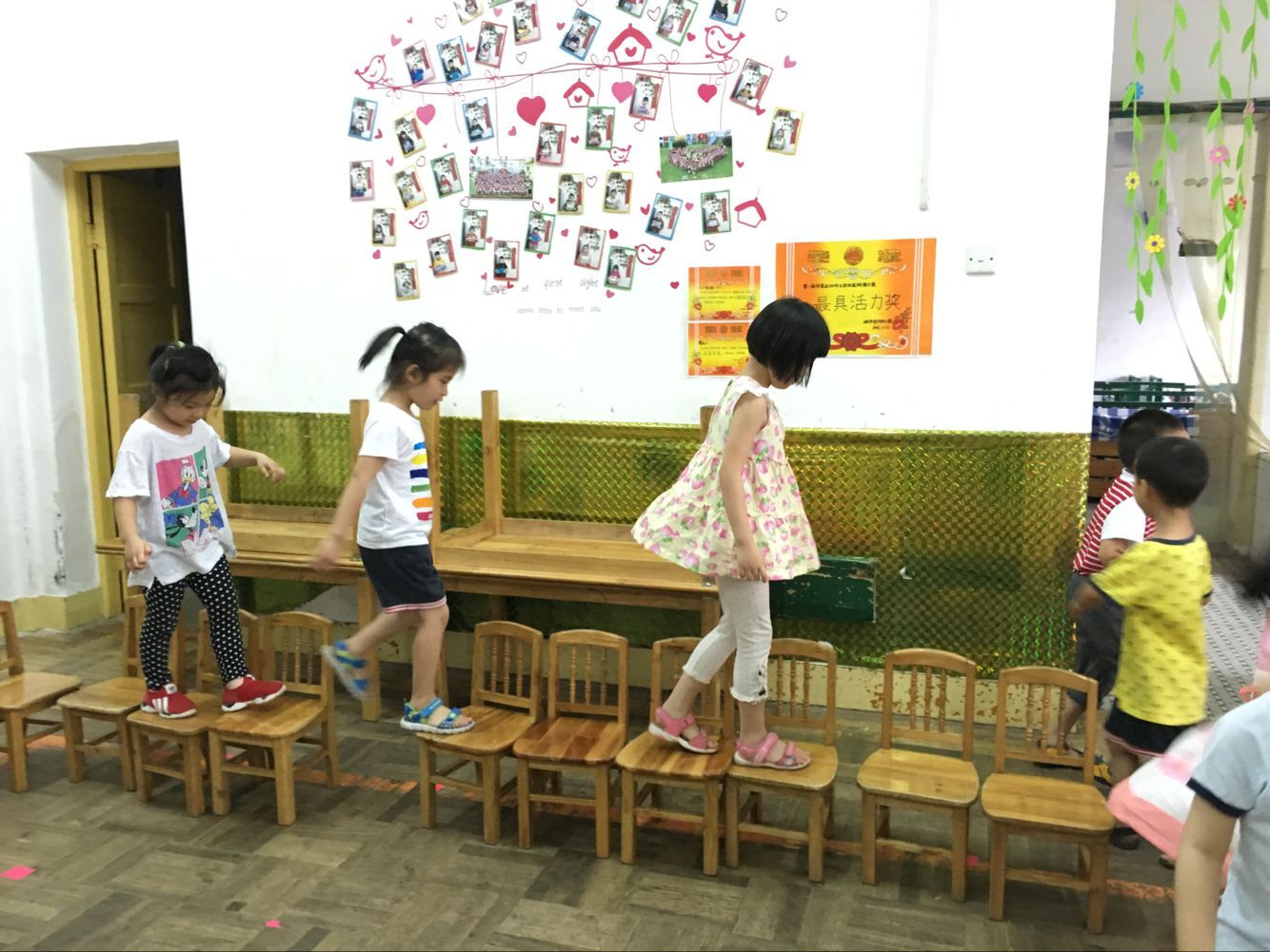 椅子独木桥是咱们中三班的特色游戏
