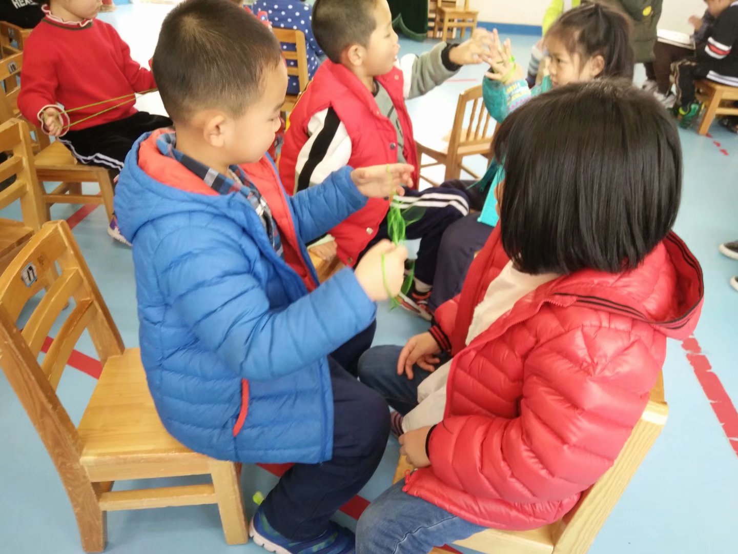 大二班的教师集思广益,搜集整理孩提时的各种民间游戏的玩法,制作了适合幼儿玩乐的民间游戏器材,通过各种形式的活动组织幼儿一起玩耍,让幼儿玩中有乐、乐中有学、玩中有得、玩中有创。
