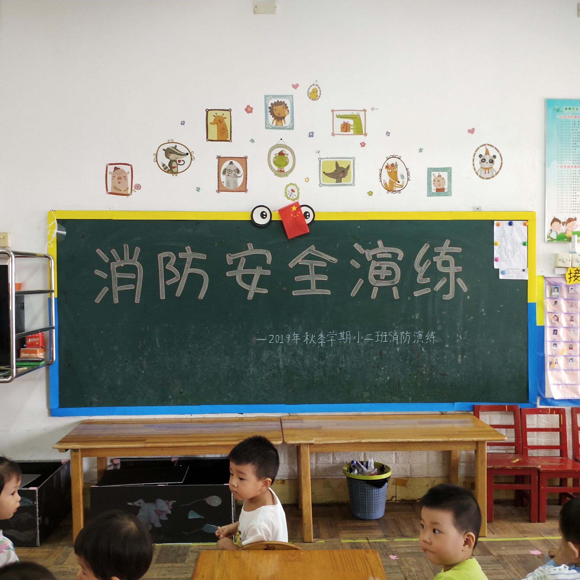 为了进一步提高幼儿园师幼的消防安全意识,增强师生火灾逃生技能,保障幼儿园的人身安全2019年9月24日幼儿园开展了消防安全演练活动,幼儿园的大草坪上有老师和工作人员搭建的充气大棚,每个班级轮流带幼儿去大棚中体验在起火时家里或者外面室内被大火烧时可能会断电,让幼儿体验断电时室内逃生的体验,活动开展很顺利。