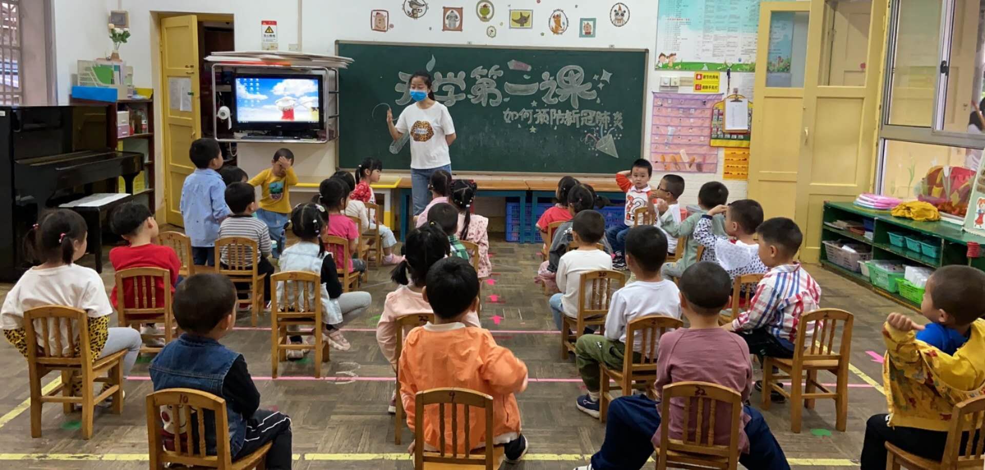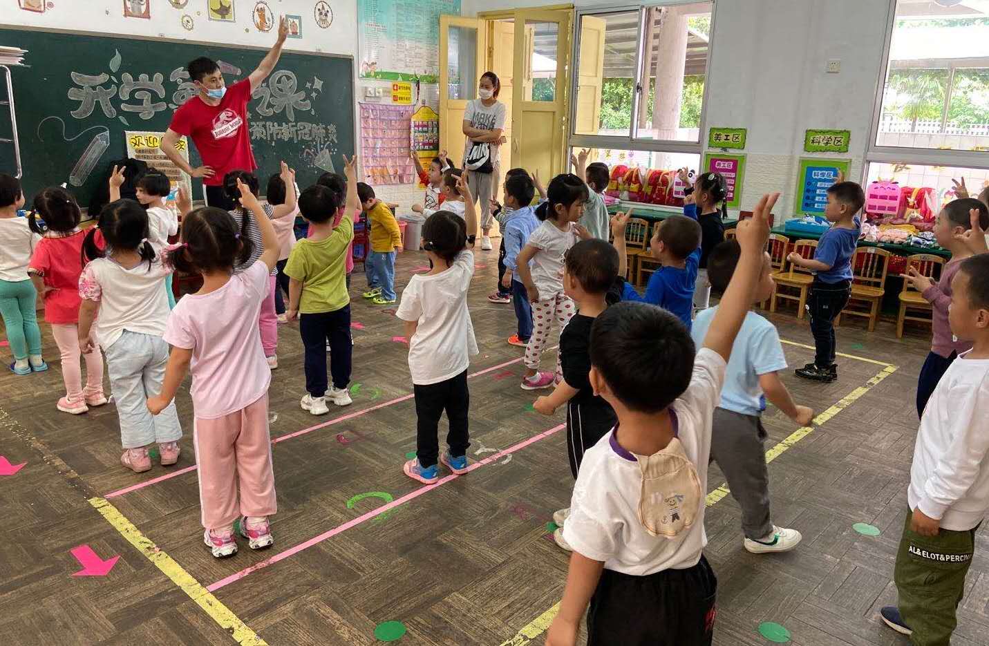 今天是小二班的宝贝们春季学期开学的第一天,宝贝们今天都很棒也很开心,开学当天,幼儿园全体老师们,都以“开学第一课”的方式组织幼儿学习防疫知识,掌握防疫技巧。同时开展有针对性的心理健康疏导,引导幼儿理性、科学地应对新冠病毒,以积极乐观、健康向上的精神面貌投入到幼儿园生活中去,开学第一天我们还展开了一次体能课,小朋友们在体能课中都会跟着老师动起来!