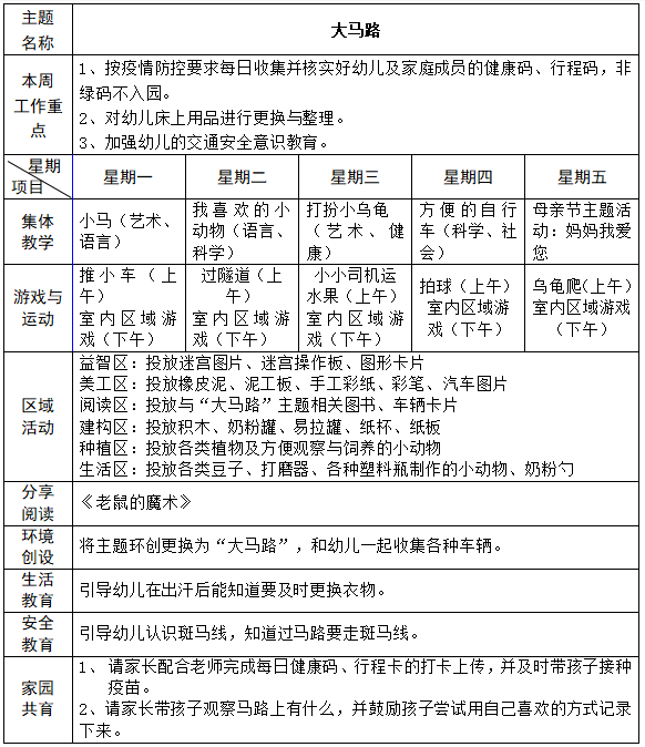第十周主题教学活动周计划安排