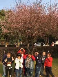 离开树屋,准备往天鹅湖去,知道大家为什么笑得这么开心吗?原来是这里有根水管在放水,可大家都说~像是在拉尿。来到了美丽的美人梅下,可惜花已经谢得差不多了。
