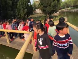 今天我们农大幼儿园大二班的孩子们就踏着轻快的步伐,沐浴着温暖的阳光,一起去寻找春天的足迹。在此次踏青过程中,孩子们来到了大家熟悉的娃娃菜园,还有美丽的天鹅湖。来到树屋,有的小朋友说好高的楼梯啊,有的小朋友却说,我能从这里跳下去。