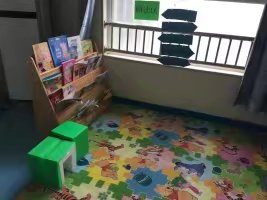还有我们的阅读区,老师们给我们做了几张小椅子,每次我们都争先恐后的去抢着坐。