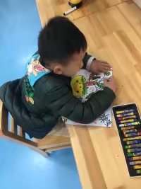 我们的美术区,有好多油画棒,今天我们还用超轻粘土做了盘子画,看起来可真不错呢!