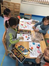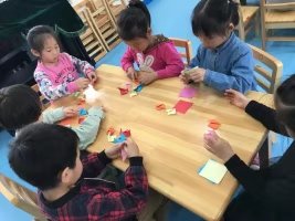 一开始我们都觉得,应该是在白纸上面画上各种颜色的花朵再把周围画上草地就可以了。可是老师告诉我们,今天我们花园里的花要我们自己动手折,我们都觉得那肯定很难,可是老师说很简单。