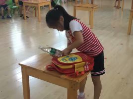 近日,大班幼儿进行了一项有趣的比赛——整理书包大赛。小选手一组组进行比赛,比比谁的书包整理地又快又好。随着老师一声令下,小选手开始了紧张的比赛。按照文具、书本、水三类物品分类摆放的要求,小朋友们忙开了。先把书包里的所有物品拿出来,再分类整理、摆放整齐,最后放入书包。比赛过程中,有的幼儿动作迅速,整理的又快又好;有的聚精会神,有的动作稍慢,但也能收放整齐。但无论快慢,每一个将自己书包收拾整齐的小朋友都露出了灿烂的笑脸,感觉自己长大了、变能干了。有趣的整理书包比赛,是一次有意义的体验,让大班幼儿懂得了自己的事情要自己做,激发了孩子们成为一名小学生的愿望,从思想上、感情上、行为上做好入学的准备。