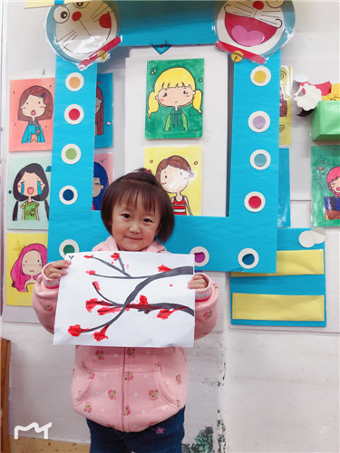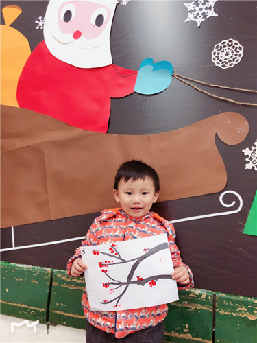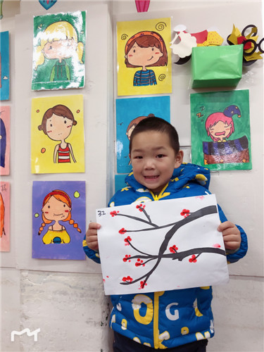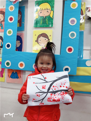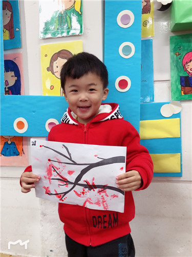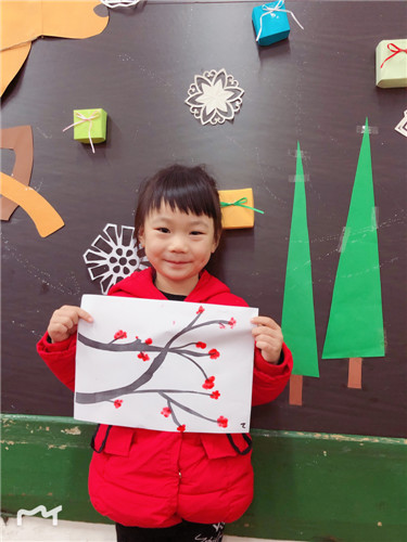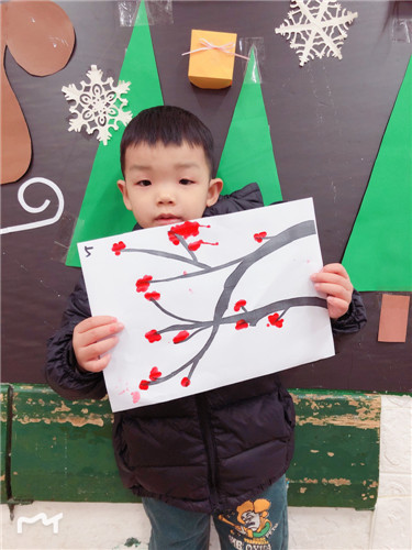 冬姑娘迈着寒冷的步伐来了,美丽的花朵羞答答的藏起来了,树叶淘气地脱离枝丫,光秃秃的树枝觉得太孤单让小三班的宝贝们为它寻找好朋友,小朋友们想来想去决定用我们的手指帮它。用我们的食指点画出了一朵朵盛开的梅花,似乎能闻到树枝上的梅花发出淡淡的清香。