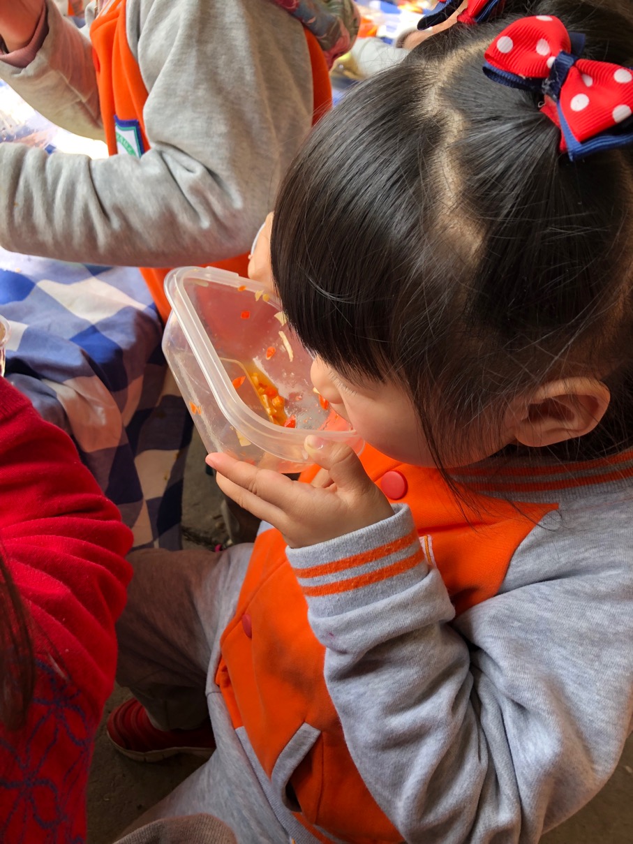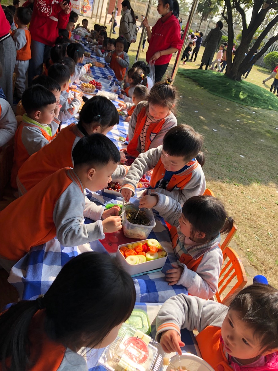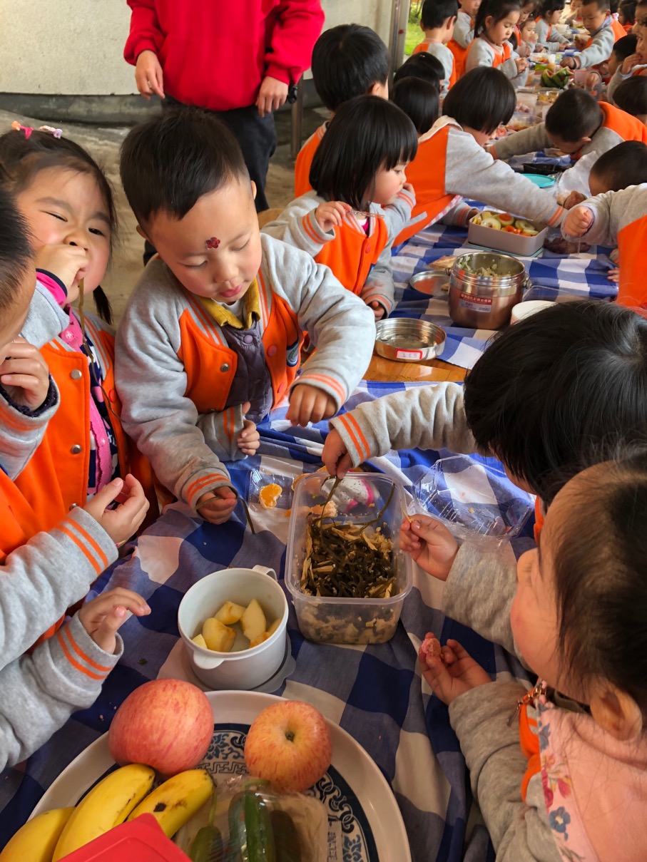 这段时间阴雨绵绵难得一个阳光明媚日子里小班组举行了美食分享会。哇 小朋友们期待已久的美食分享要开始啦!每个小朋友坐在了美食桌边看着桌上色味俱佳的美食小手眼睛迫不及待的想吃啦!终于主持人彭老师说可以用餐啦,小朋友们拿起小叉子往看中的食物叉去。嗷呜嗷呜这个真好吃,手工饺子从饺子型吃成了米粉型,海带凉菜最受欢迎 食物差不多在还没结束时就席卷而空。美食分享真有趣!