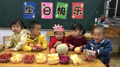 周一的午睡起床后和以往一样我们准备吃点心了,但今天的点心与以往不同,是一个生日蛋糕和各种各样的水果摆放在桌上。原来是我们宝宝班刘陈蒲珈的生日,这也是珈珈入园的第一个生日,同样也是宝宝班其他小朋友在园参加的第一个生日会。莲莲老师告诉小朋友:今天呀是我们珈珈小朋友的生日,今天早上学珈珈的妈妈就送来了水果和蛋糕给小朋友分享,一起给珈珈小朋友过生日。