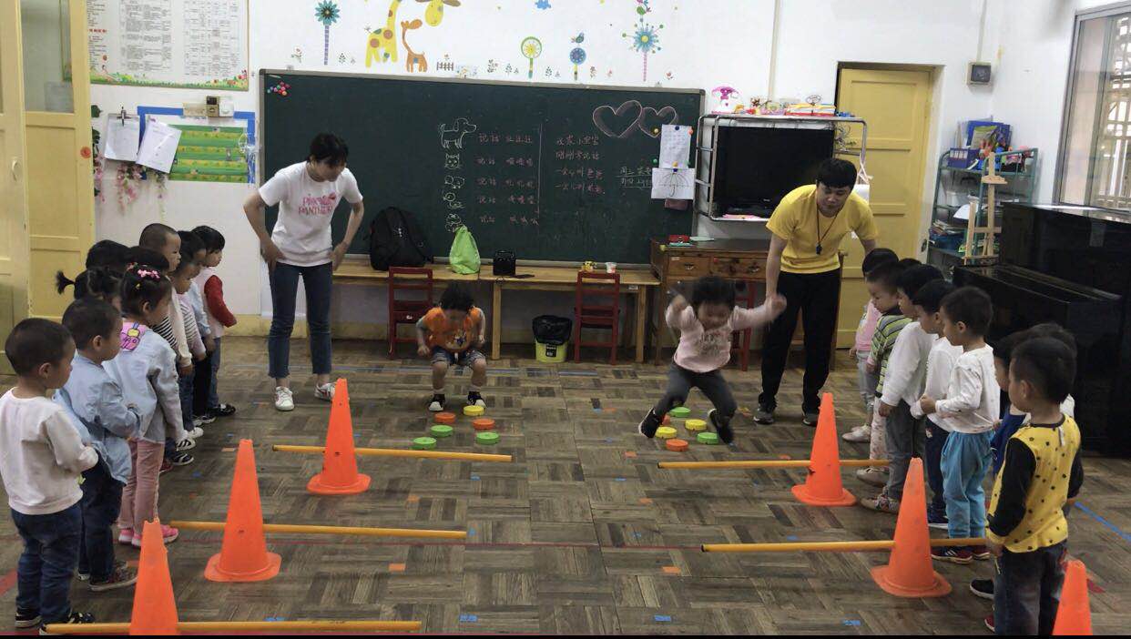 每周一堂的体能活动开始啦!从宝贝们兴奋的模样看得出,他们对体能活动非常的喜爱。活动前,猴子老师带领宝贝们进行了热身运动,趣味的音乐激发了他们的运动细胞,每个宝贝都认真的跟随猴子老师跳动着。活动过程中,猴子老师利用专业的幼儿运动发展视角,将幼儿园体育课程经过整合、物化、重建,通过徒手游戏教学、器械活动教学、音乐律动教学等形式突破性地重新建构了幼儿园体育课程的新概念。使参与其中的孩子们在充满儿童化、生活化、趣味化、故事化的活动中,自主独立、健康向上、自信有为、均衡发展。跳高在体育教学中特别对宝宝班的体育来说是有一定的难度,也有一定地挑战性,孩子们通过体验练习、老师讲解示范、勇敢的跨出了第一步。在整个活动中孩子们玩得很开心!整个游戏活动的强度、密度适中,同时注重动静结合,开始部分的热身活动、基本部分的游戏活动、结束部分的放松活动,体现了体育教学活动的学科特点,让幼儿在乐中学,趣中练,大大激发了他们参与体育活动的兴趣,也从不同层面使幼儿动作技能得到发展,取得了良好的教学效果。