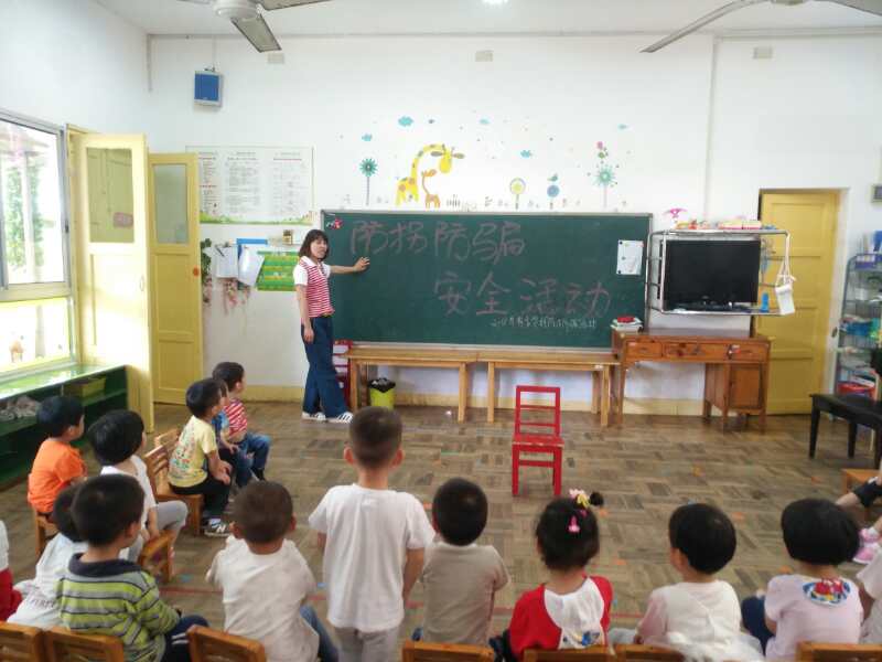 我班活动地点是幼儿园后面的游乐场,宝贝们在老师的带领下进行自由活动,由农大在校学生扮演的“人贩子”,通过玩具,零食等工具和方法对我班孩子进行诱拐,在这些“人贩子”和个别宝贝打招呼时,少数宝贝是没有任何防范意识的一直在和陌生人聊天甚至个别已接受了陌生人的食物!陌生人前后对两名幼儿进行反复诱惑!结果最后还是被成功带走,活动结束回到教室老师也立马对此次活动进行总结与教育,通过这次活动,对宝贝们都是一次特殊的经历,一方面增强了幼儿的自我保护意识,一方面也提高了教师和家长的防范意识。