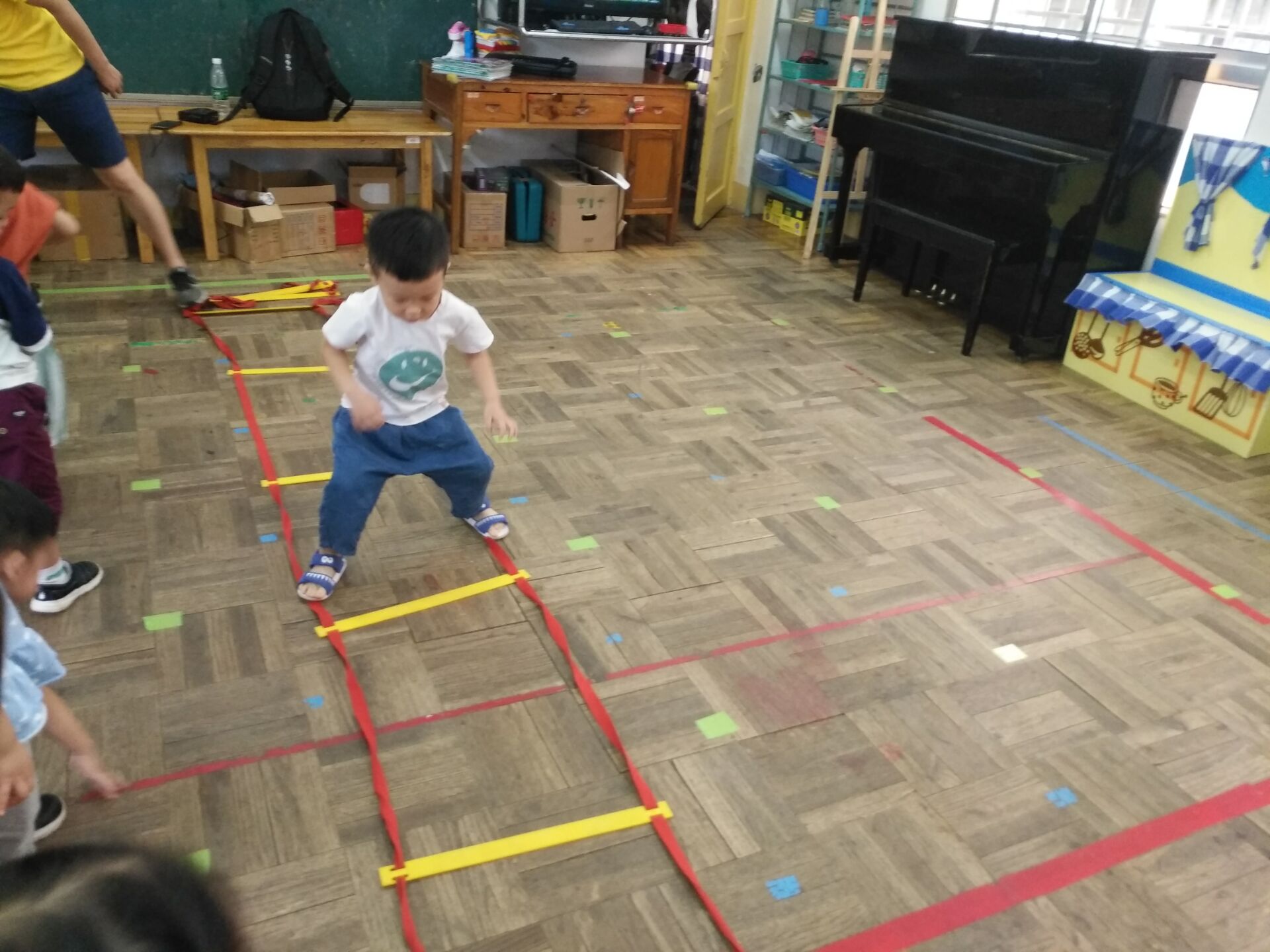 本周五又迎来了小朋友们最喜欢的猴子老师的体能课,在课前猴子老师先带领幼儿进行了热身活动,热身活动之后拿出了敏捷梯,猴子老师给小朋友们讲了玩法,就让宝贝们开始游戏咯,在敏捷梯上练习双脚跳,踩线跳每位小朋友们轮流玩了好几次,玩得非常开心,最后猴子老师又教了一种新玩法,就是把敏捷梯立起来,让宝贝们绕着爬,每位宝贝都爬过一次后,宝贝们就开始放松活动啦,一堂好玩的体能课又结束咯,看看宝贝们的精彩时刻吧!