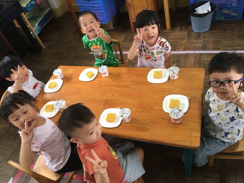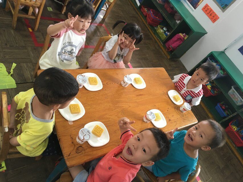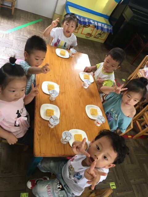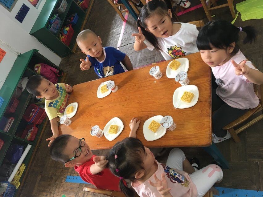 为了加深孩子们对中秋习俗及传统文化的了解,活动一开始,王老师首先讲解了中秋节的来历并播放了相关的知识、古诗、动画视频等等,让小朋友们通过活动感受中国传统文化的特点,充分了解中秋节的风俗习惯。接下来是唱歌环节,王老师教幼儿学唱《爷爷教我打月饼》。每个孩子是那样的开心和快乐。最后到了孩子们最期待的环节,那就是园长妈妈为我们准备了美味的月饼和酸奶登场啦!我们还认识了月饼的形状有圆形的、正方形的,接下来我们要品尝月饼咯,看看孩子们多享受呀!