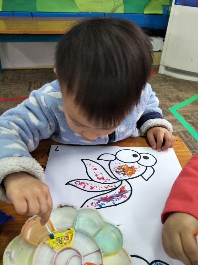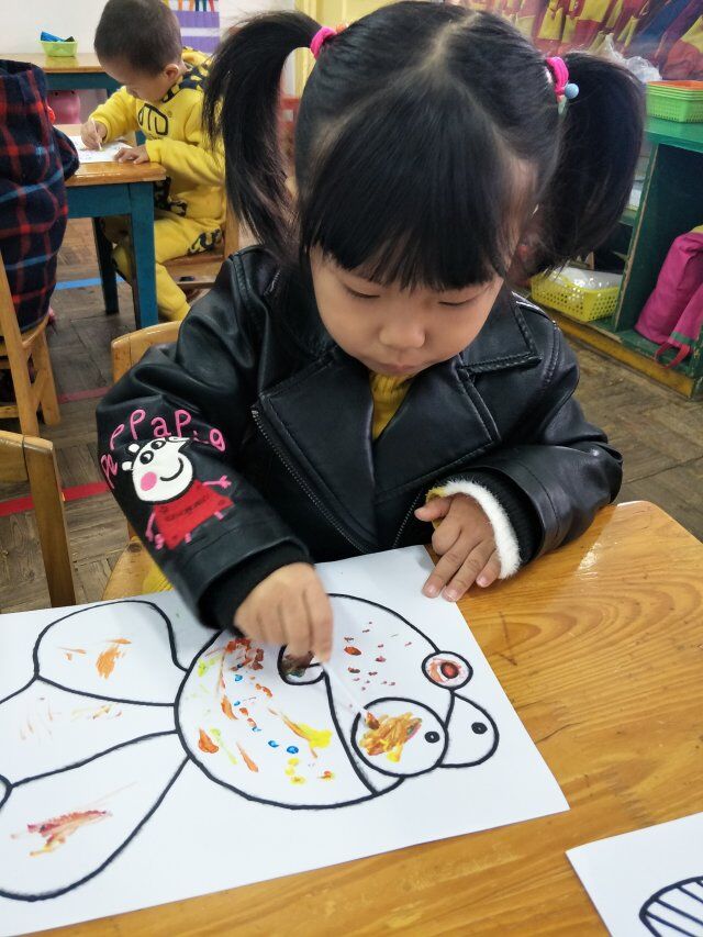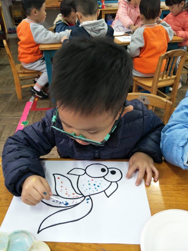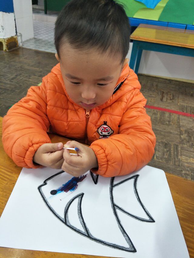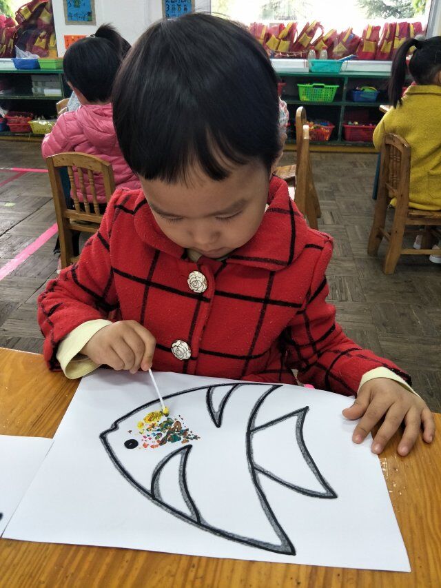 棉签点画不同于平时的蜡笔绘画,它更具有创意,新颖的作画方式总能吸引孩子们,兴趣也是孩子最好的老师,因此本次活动的开展深受孩子的喜欢,每个孩子都能给鱼儿点出不一样衣服。小小的活动不仅仅能锻炼小班幼儿园的手指小肌肉,也能培养孩子对美是感受,表现美,创造美。
