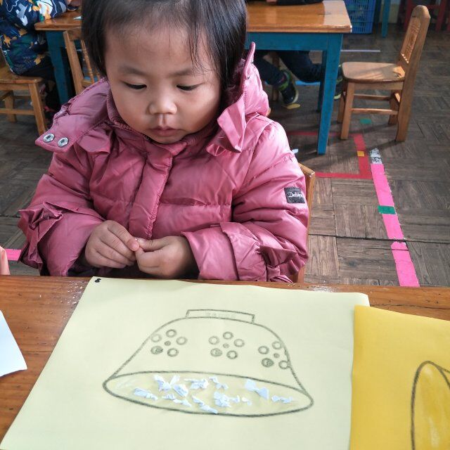 本周小一班开展了《香喷喷的白米饭》的手工撕纸活动,首先教师向幼儿介绍米的特征,了解米长什么样子,生的和熟的有什么区别。本次使用的材料是A4白纸,教师示范应该怎样撕纸揉成米,用请小动物吃饭的情景让幼儿提起兴趣,制作米饭时,大部分幼儿都可以自己操作,只有个别幼儿需要老师帮忙。制作完之后幼儿自己把米饭送给小动物吃呢,瞧瞧,认真的宝贝们~