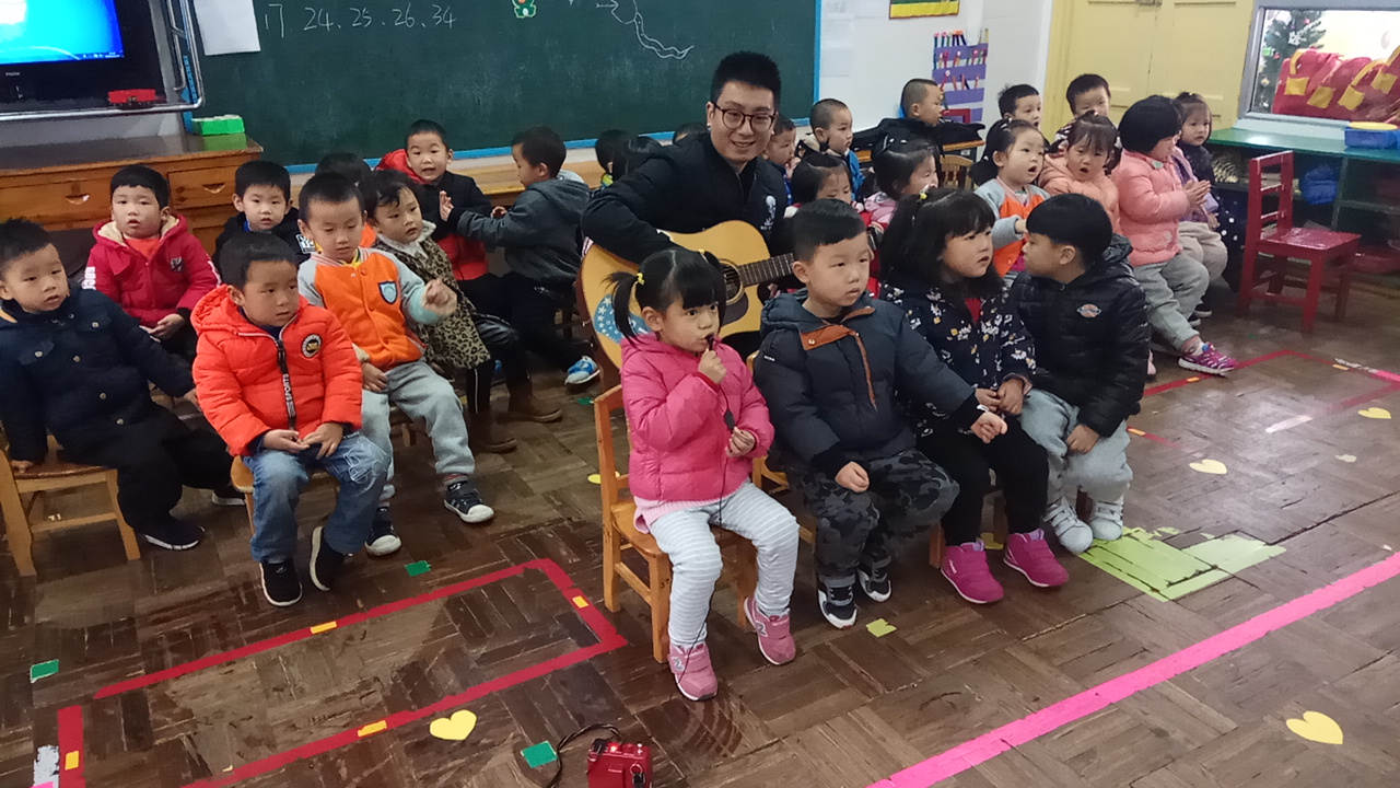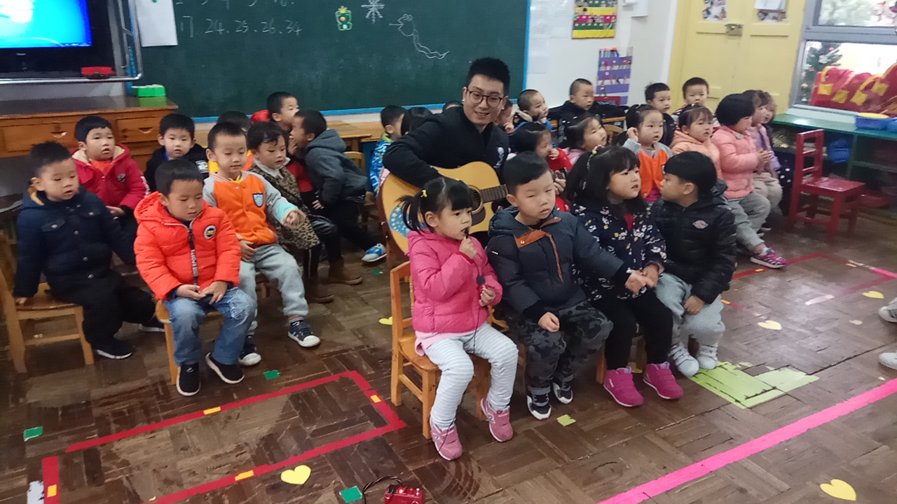 家长是幼儿园教师的重要合作伙伴。为了更好地拉近幼儿园与家庭的距离,有效地利用家长资源,开阔幼儿的眼界,拓宽幼儿的思维,期末汇报中有家长和幼儿共同表演环节,为了在期末汇报中更好的展现。27日上午,我们邀请到了王汐璨小朋友的爸爸。洋洋爸爸是一位音乐教师,有着多年的音乐教学工作经验。深受学生们的喜爱。在来幼儿园之前,班级老师和洋洋爸爸有过深沟通,了解什么是适合小班学习的音乐。洋洋爸爸带了吉他给幼儿伴奏,幼儿非常配合,很快我们就学会了《虫儿飞》这首歌曲。