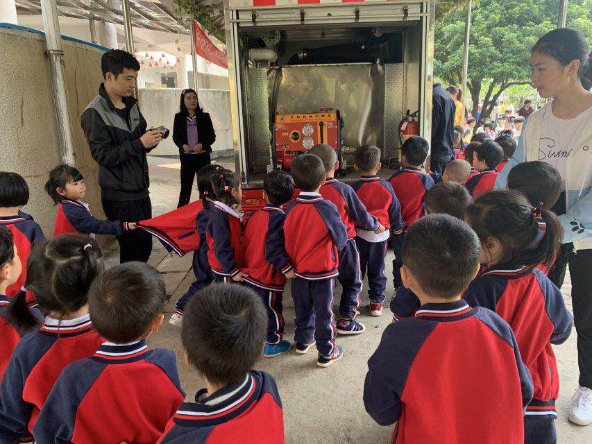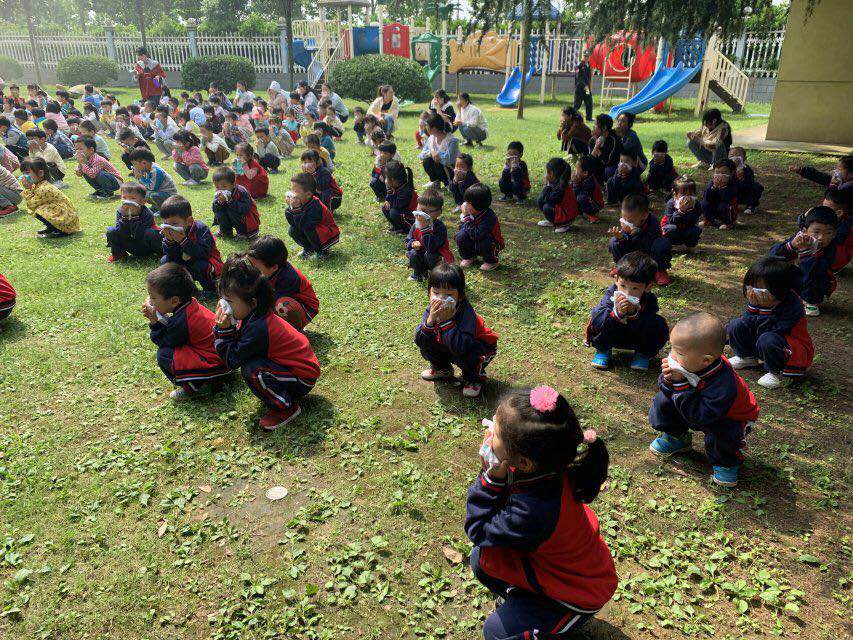 上午10点随着急促的警报声响起,全园幼儿在教师的带领下迅速用湿毛巾捂住口鼻, 弯腰伏身快速而有序地按预定疏 散路线从“火场”逃离疏散到幼儿园的操场上。全园教工分工明确各行其责整个活动井然有序。约3-5 分钟后全体师幼都已 安全的撤离到了室外空旷的安全地带。