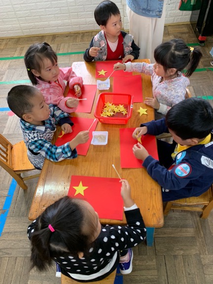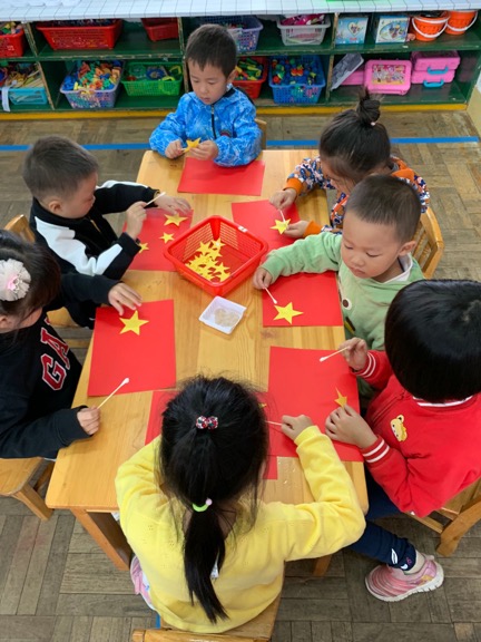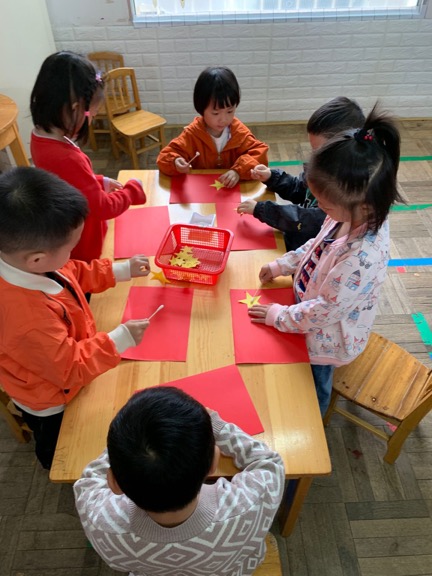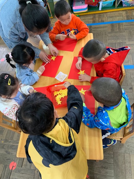 国庆节过后,为了让孩子们对庆祝祖国妈妈生日国庆节加深记忆,特地安排了一堂制作国旗的美术活动。活动前孩子们观看了阅兵大典的视频,孩子们都很认真也很兴奋,在制作国旗时我们的孩子们很细心地操作着每一个步骤,认真地制作国旗。让我们一起来欣赏宝贝们制作国旗的模样吧!!!