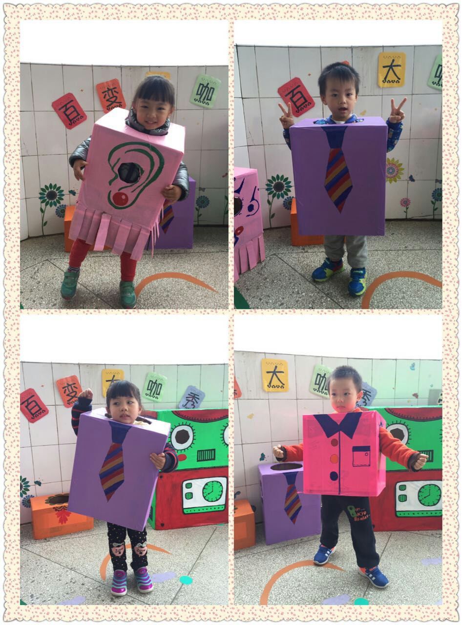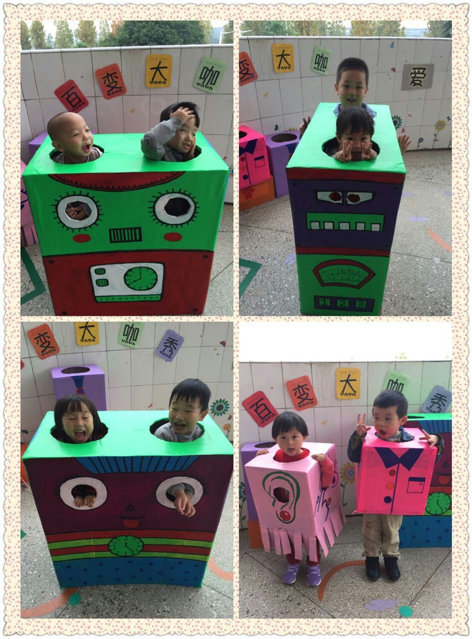 本月小二班的老师们为宝贝们更新了区域角游戏材料,其中大家最喜欢的就是“百变大咖秀”的机器人服装。搞怪的表情,新颖的创意,宝贝们特别喜欢,让我们一起来看看吧!