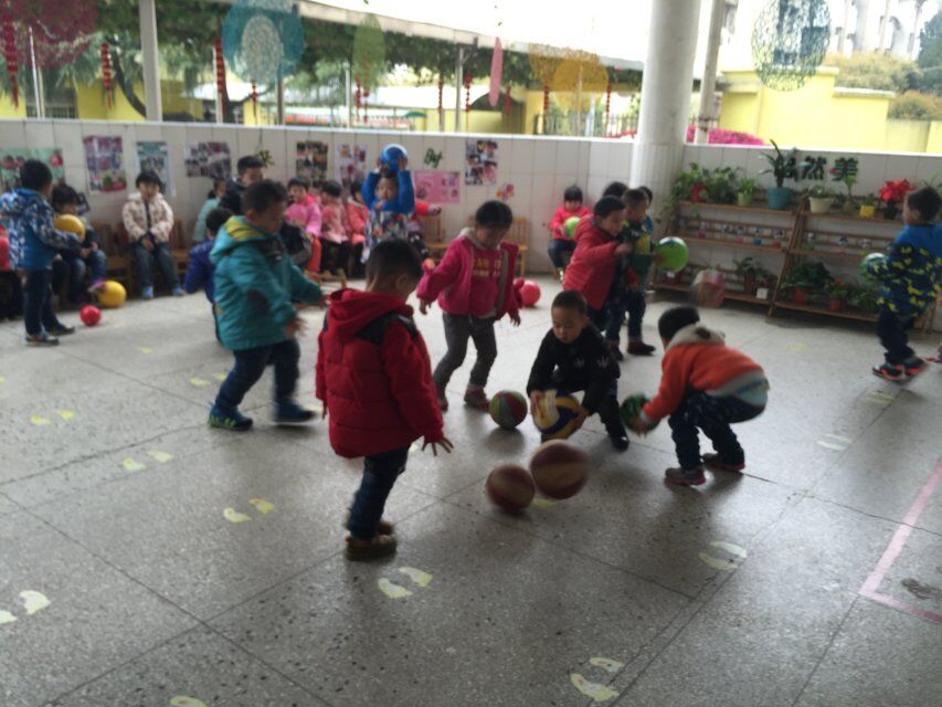 在拍球游戏中,可以满足宝贝们的兴趣,提高宝贝们参与体育活动的积极性;促进宝贝们神经系统对肌肉的控制与调节、视觉与大肌肉动作的协调、左右手的相互配合与协调(左右手拍球)。腿部动作与手的动作的配合与协调(运球)等方面能力的发展。在拍球活动中,幼儿可以体验力量与物体变化的关系,如:用力过大,球会弹得很高或脱离人的控制,用力过小,求不会弹起。此外,拍球活动还可培养宝贝们的专注力、增强宝贝们的自信心和成就感。