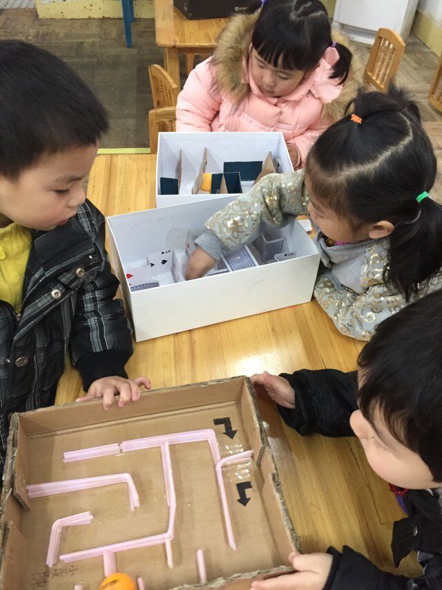 在孩子们的自由活动中,老师发现孩子们对迷宫发生了兴趣,或单个或凑在一起,对迷宫指指点点,寻求找到走出迷宫的好方法,孩子们还带来多种多样的迷宫书,形式多样,内容多样。借此就从孩子的兴趣出发,拓展孩子的兴趣点,提升孩子对迷宫的认识。