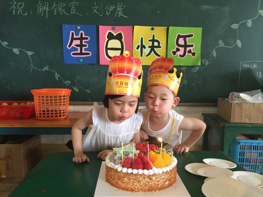 这学期在幼儿园里过生日的宝贝,谢谢你们愿意分享蛋糕和快乐给小伙伴们,你们的生命刚刚翻开了一页,愿初升的太阳照耀你们诗一般美丽的岁月。明天属于你们。