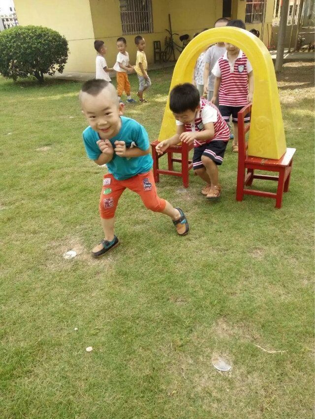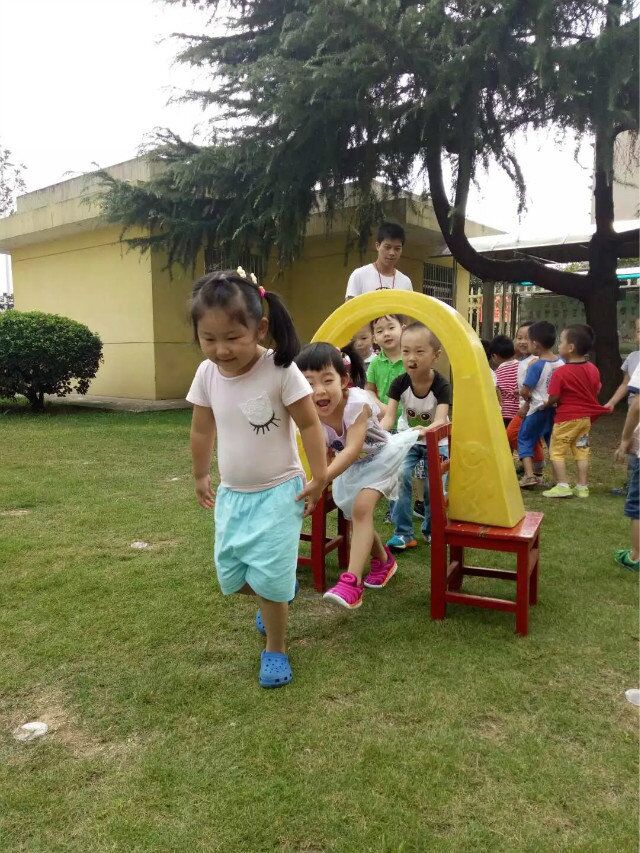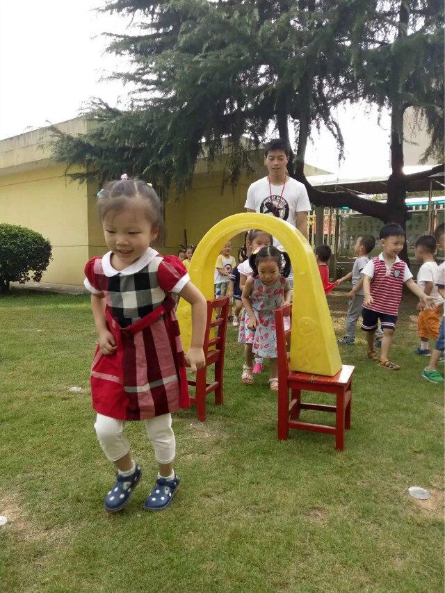 周五的体能课开始啦,小虎老师带领孩子们做了热身活动后,带小朋友们完钻山洞的游戏。游戏开始,教师说“开火车了,呜——”幼儿两臂屈肘前后摆动,模仿火车车轮的转动,一个跟着一个走,边走变念儿歌:“一列火车长又长,咔嚓咔嚓向前方,钻山洞,过大桥,运粮运煤忙又忙。呜—咔嚓咔嚓。”幼儿齐发“哧—”的声音,蹲下,游戏重新开始。玩完一轮后,小虎老师增加游戏难度:第一个幼儿坐火车头,其他幼儿都做车厢后面幼儿拉着前面幼儿的衣服往前走,待听到“火车到站了”的口令后,即可自由走动。火车继续开始,每人要迅速找到自己的位置,继续往前走。钻山洞时要一个跟着一个走,不推不挤。