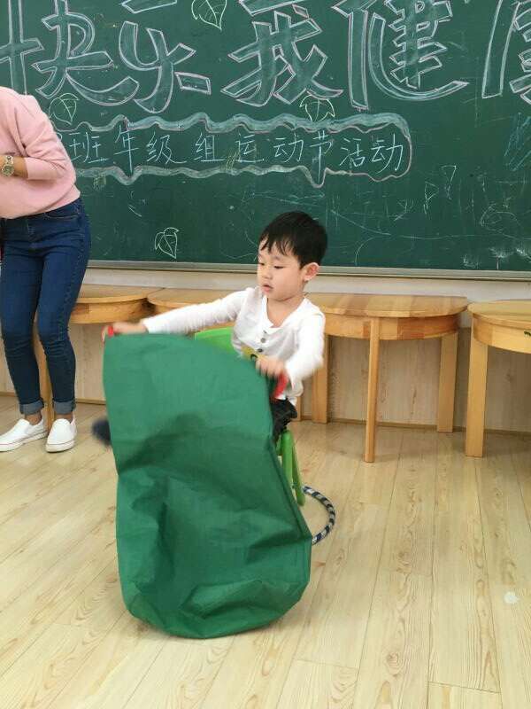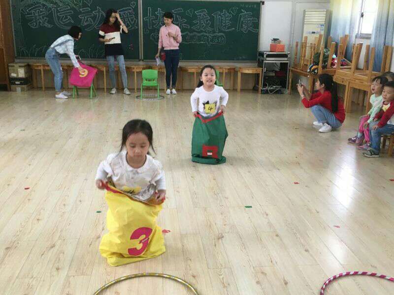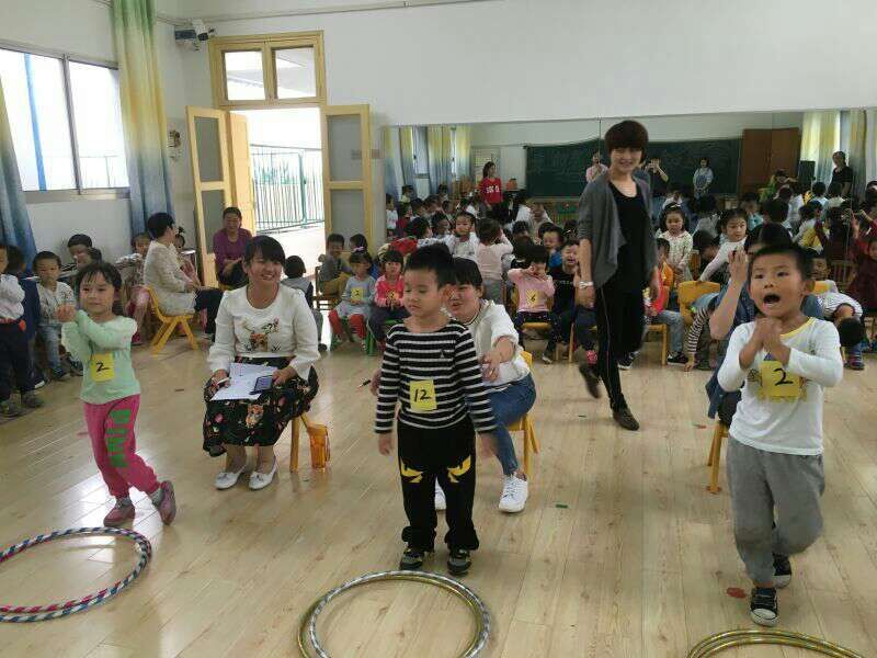 2 016年10月20号,我园教师和小朋友们以饱满的精神和积极的态度迎来了"我运动、我健康、我快乐"中班运动节。上午10点,在舞蹈教室上,我们幼儿园领导和中班所有教师与幼儿准时就位。为了开好本次运动会,我园教师群策群力,认真做好每项工作,每一个项目、每个动作无一不浸透着老师对孩子们的关心和爱护。孩子们也在教师的认真教导下,不怕苦不怕累的不断练习,最后成就了孩子们完美的展示。三个班,每个班派出了12名小小运动员。每一次各班派出一名孩子参加比赛。比赛开始,我们的幼儿迅速跳入圈中,再把圈从身体中绕出来,循序渐进,跳到对面的椅子上,再站到袋鼠袋子里面跳回终点。每一个宝贝都有着积极认真的态度参与其中。没有参加的小朋友大声为自己班的小伙伴加油。