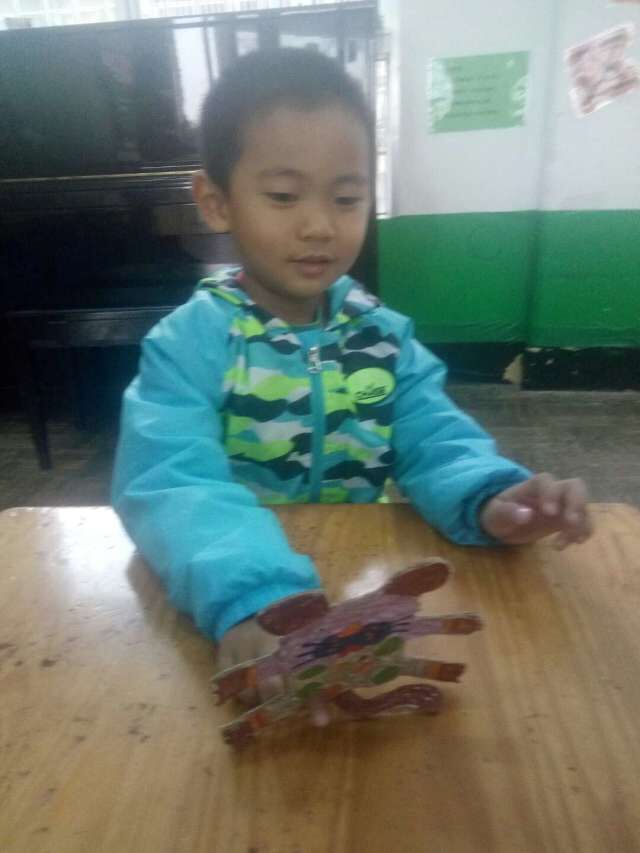 为了增强孩子们的动手动脑能力,和孩子们的环保意识,我们班级开展了“自制手偶”活动。孩子们通过自己想办法,收集材料,与家长们一起制作手偶,孩子们的兴趣都非常浓厚,家长们也积极配合,家长们进行绘画,宝贝们进行涂色,相互配合。利用废旧材料陪伴我们的孩子一步一步的完成我们的手偶玩具。因此本月我们新增添了一个区域角,表演区。孩子们自由选择手偶玩具进行角色扮演。孩子们的思维很活跃,想象力也很丰富。他们模仿各种小动物的语气进行对话,内容丰富有趣。这个新玩具他们都很喜欢,同时也可以发展他们的语言能力。