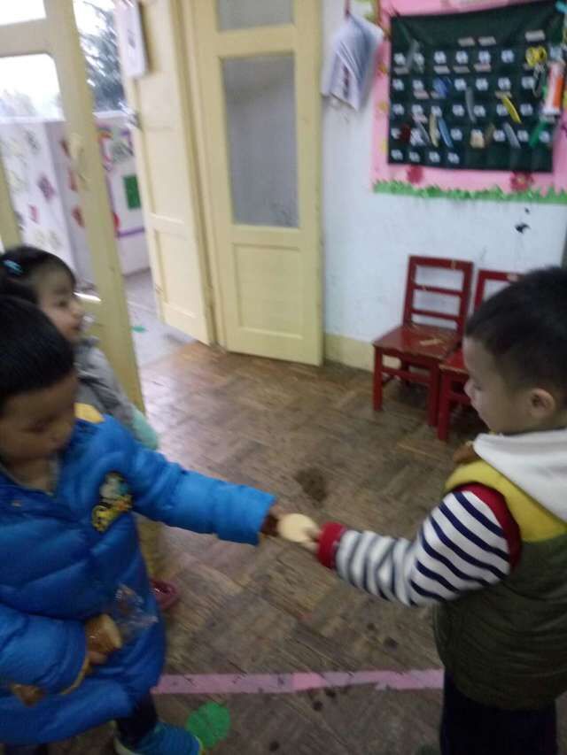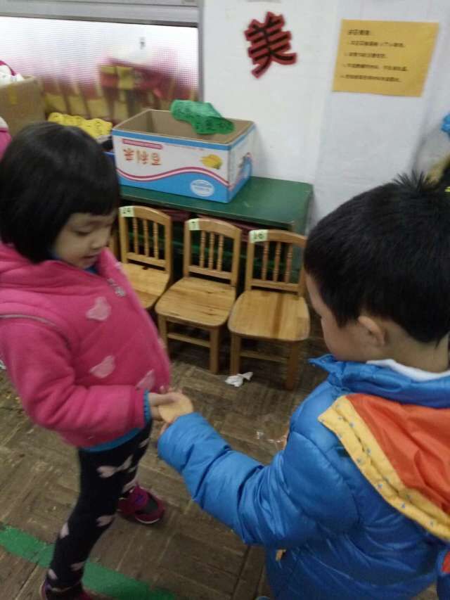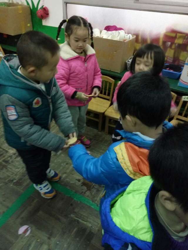 现在的孩子们都是独生子女,都是爸爸妈妈爷爷奶奶姥姥姥爷等等这么多人手中的一个大宝贝,想要什么就能得到满足,所以很多孩子都以自我为中心,缺乏分享意识。学会分享是建立良好人际关系的基础,通过分享意识的培养可以使宝宝懂得有好东西大家一起分享是一种快乐的事情,愿意与他人分享,并且在分享中获得满足感。我们班的小朋友过生日都会带蛋糕来和小朋友一起分享,这两天有好几个小朋友带了零食想和小朋友一起分享,让我感受颇深。我们要让孩子从感情上认识什么是分享,怎样与别人分享,获得分享的快乐 每次的分享活动开始,首先介绍今天的零食是谁带来的,表扬这个孩子,并且请大家鼓掌谢谢这位小朋友。孩子在这种能得到表扬和鼓励的快乐心情下,很大方的分给自己的好朋友们,而且分发的时候表现非常自豪和神气,像个小老师一样。于是很多小朋友都对我说:老师,我家里有好吃的,我也要带给小朋友们一起分享。让孩子们由不愿意把自己的好吃的给别人吃,转变成自愿的行为和意识。分享过程中,大家讨论今天吃的东西是什么形状?什么味道?什么颜色,从无意的提问到有意的观察和回答中,提高了孩子们的观察分析能力。通过分享活动让他们学会团结友爱,相互关心。其实分享也不止是“吃”的分享,还能分享好玩的玩具,分享自己的心情故事等等。