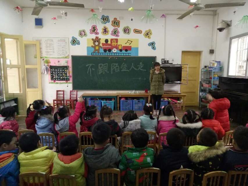本月我们设计了一堂安全活动--不跟陌生人走,在活动中利用观看课件情景模拟、分组竞赛等多种活动形式,由易到难的引导幼儿了解遇到陌生人应该怎样做。在活动环节上环环紧扣、层层递进。首先利用生动形象的故事课件引导幼儿分析瑞瑞的行为,初步了解什么是陌生人,认识到不能轻易相信陌生人。接下来精心设置了活动环节,情景真实,让幼儿通过亲身体验去感受跟陌生人走的危害,巩固了认识。