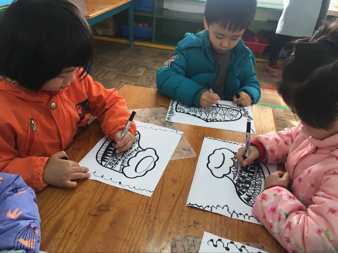 本学期我们班幼儿主要练习线描画,线描画有别于其它绘画形式,它通过线和形的重复排列,画出各种图案,通过黑、白的处理对物象进行装饰,从而加强幼儿审美的感性训练,培养幼儿观察事物和表现物形的能力,提高幼儿审美能力及创造性思维。