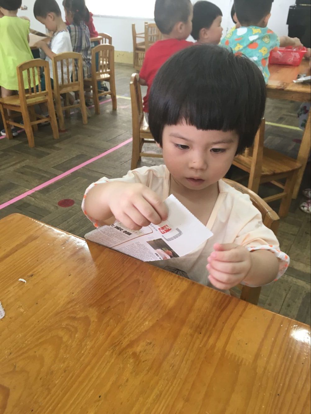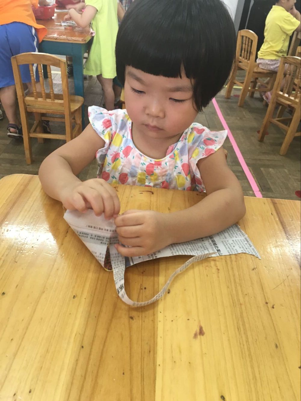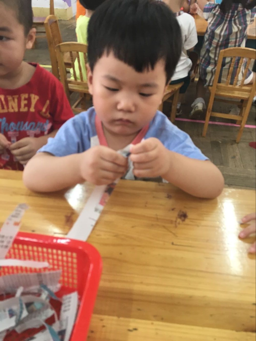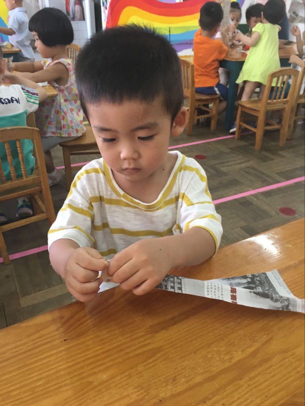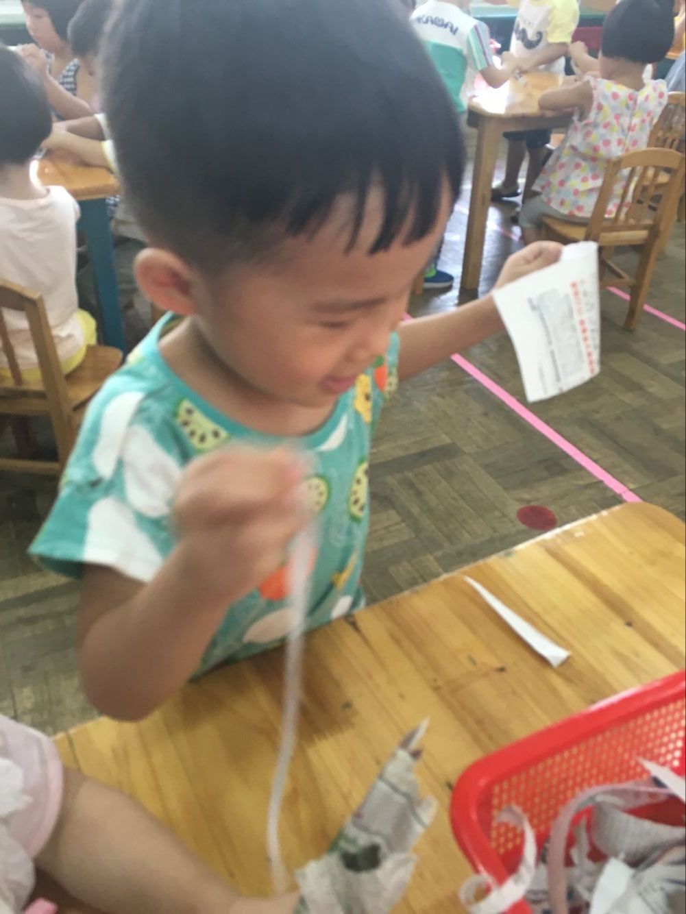 今天小一班举行了一堂趣味撕纸活动“美味面条”