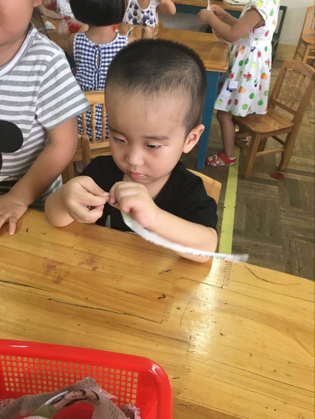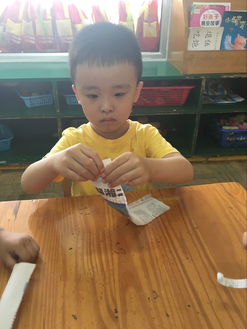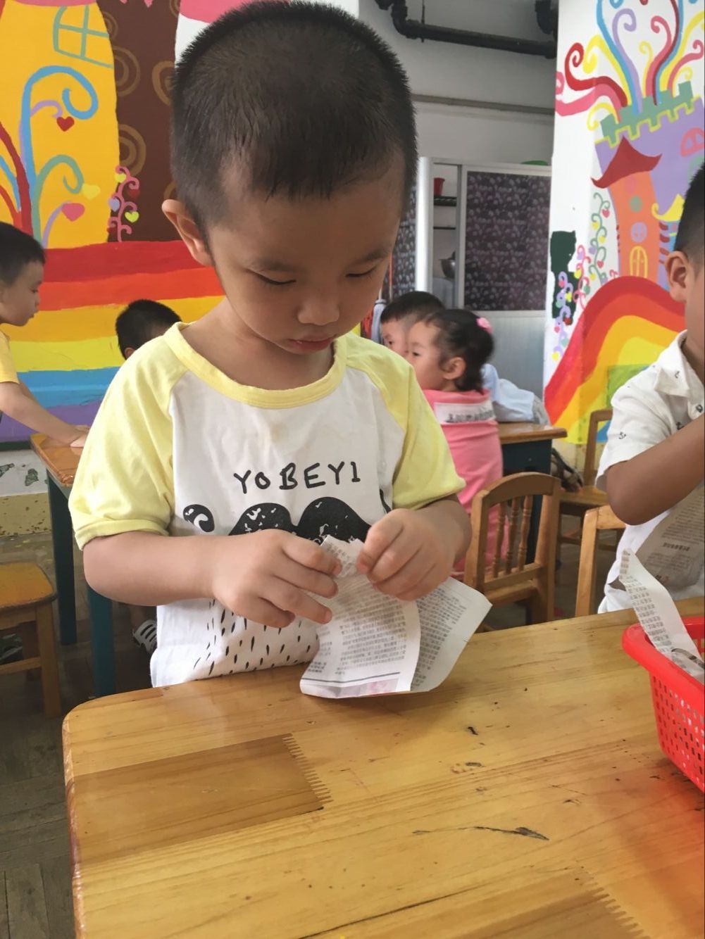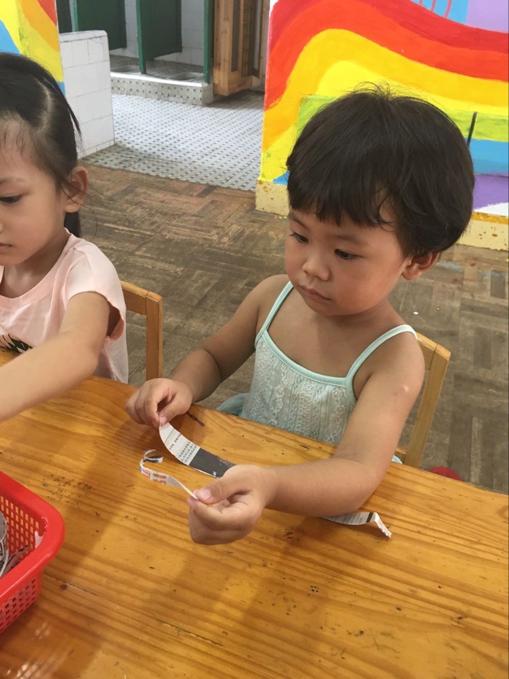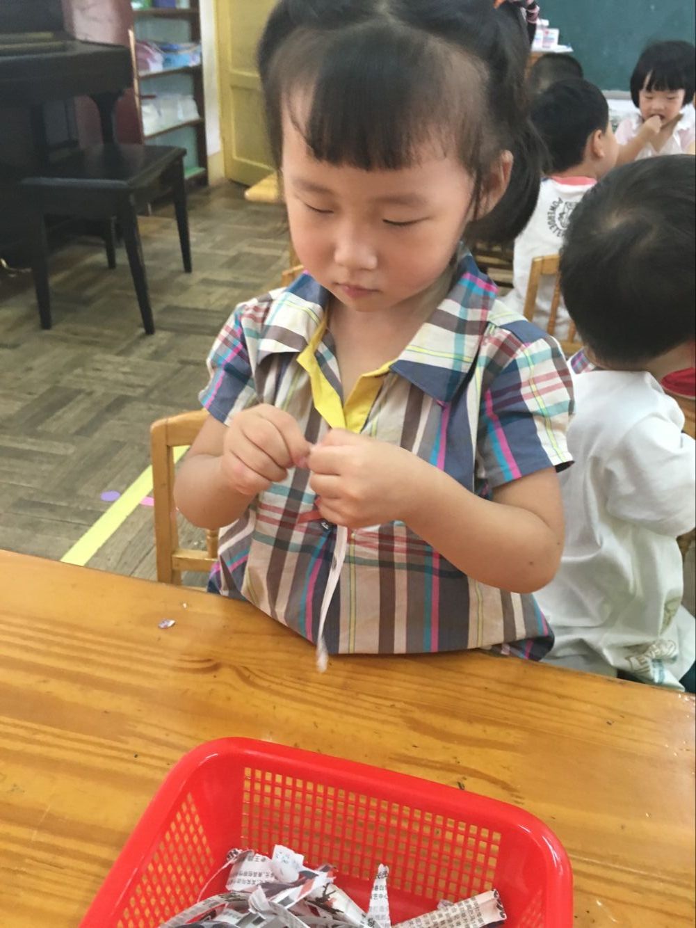 今天小一班举行了一堂趣味撕纸活动“美味面条”