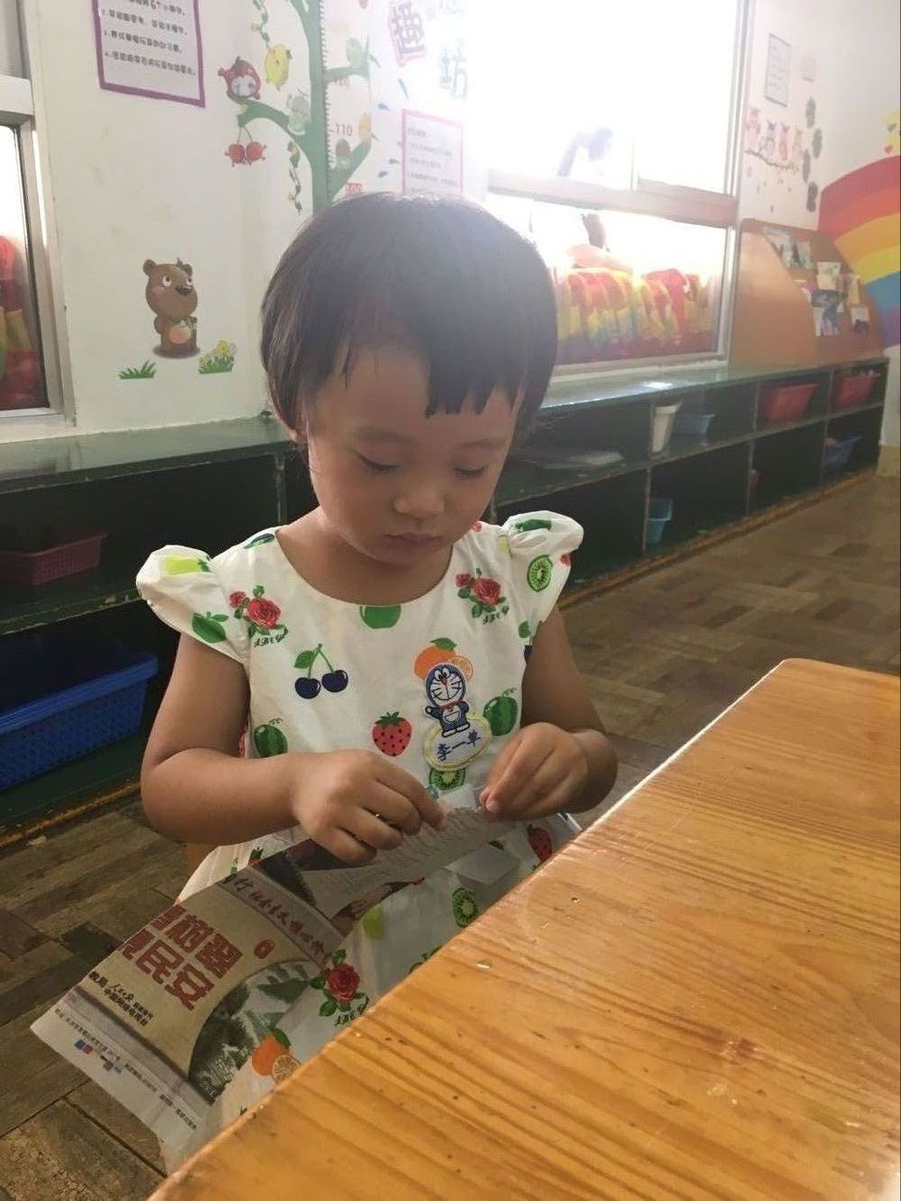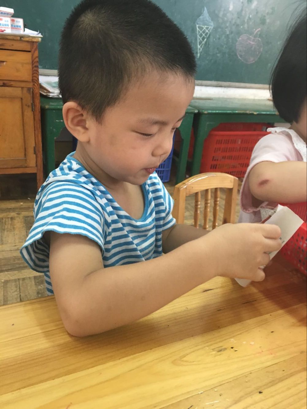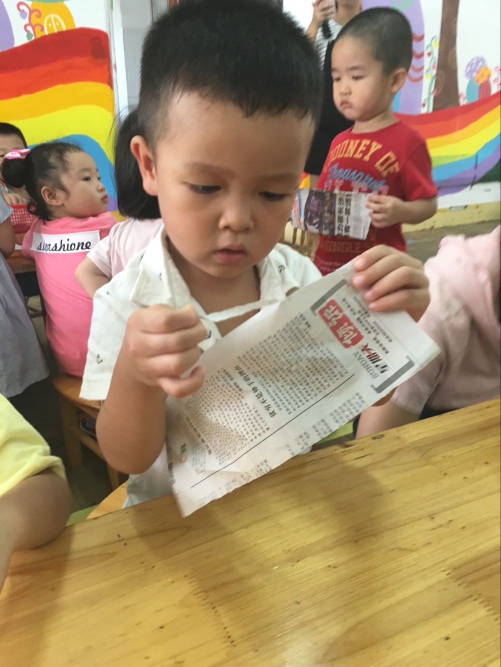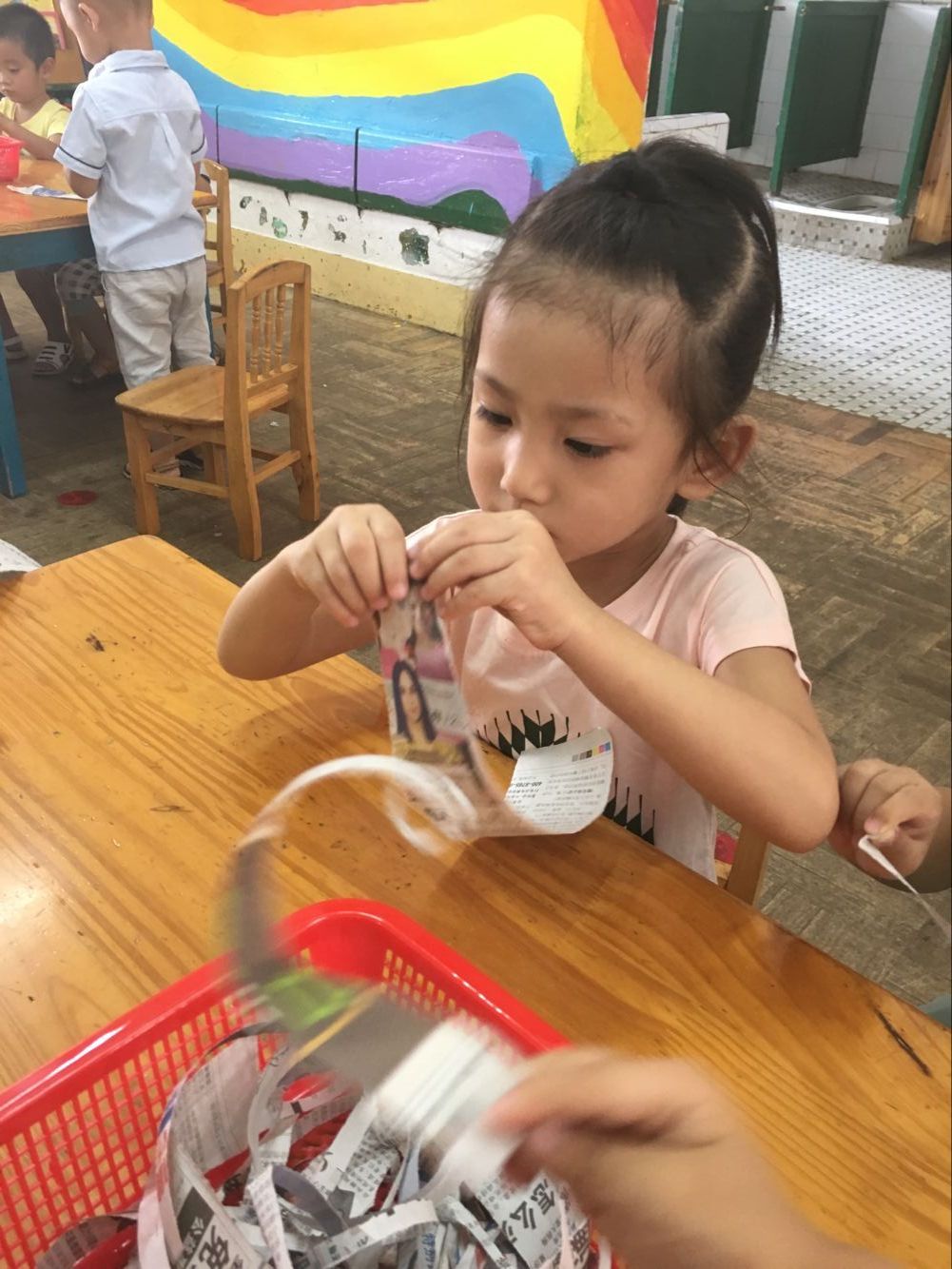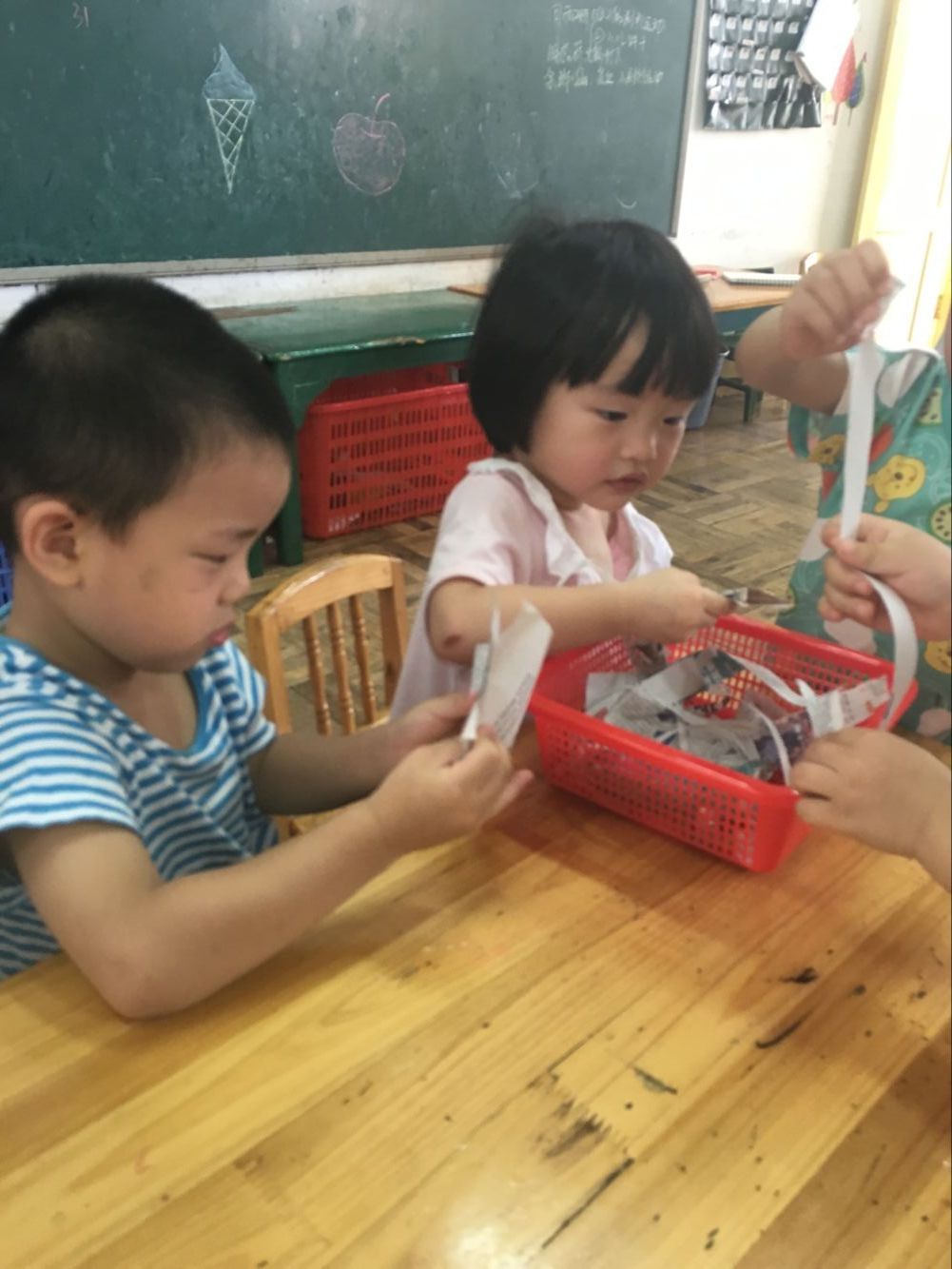 今天小一班举行了一堂趣味撕纸活动“美味面条”