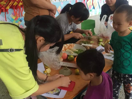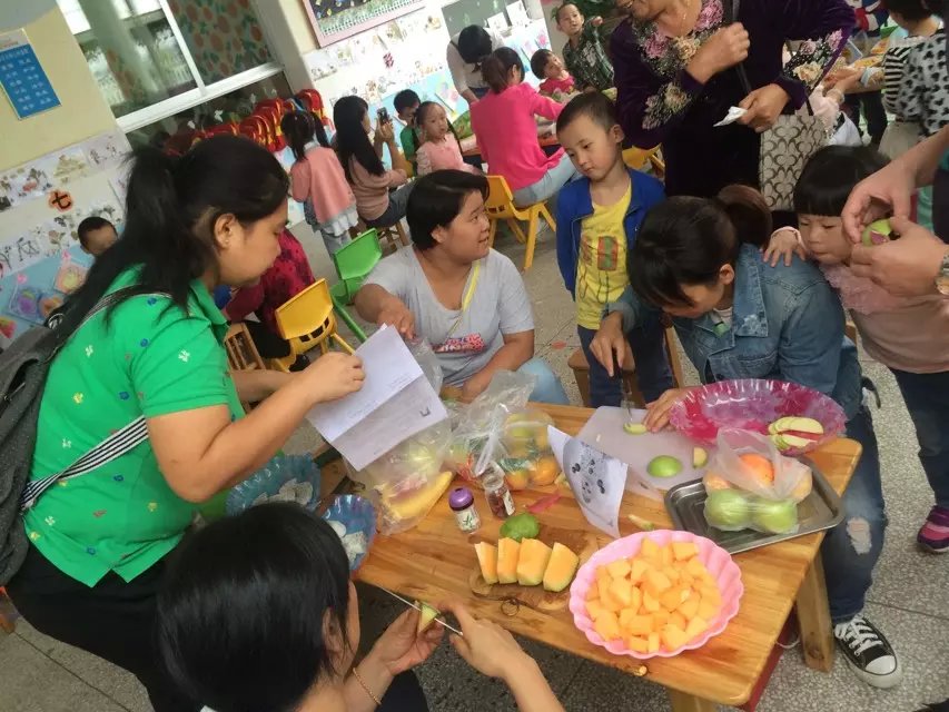 首先这个活动具有认知的功能,各种各样的水果对孩子来说就是一个非常直观的科学活动,家长可以让孩子先看看每种水果的外观、颜色、形状,闻闻他们的香味,看看这些水果在活动中发生了哪些变化?同时在拼盘过程中,我们家长们可以动刀,让孩子们来动手,引导孩子尝试简单的造型,配色,并能按照一定的规律进行摆放,我想在这个过程中孩子一定也非常的快乐,因为他不再是一个旁观者而无所事事,而是一个创造者参与其中,这样让孩子更能体会到学习的快乐,享受成功的喜悦。每个活动的目的不是为了最后的结果,我们为家长搭建参与平台目的不是仅仅让家长来做一次水果拼盘,而是为了让孩子在这样一种形式中得到学习和发展。
