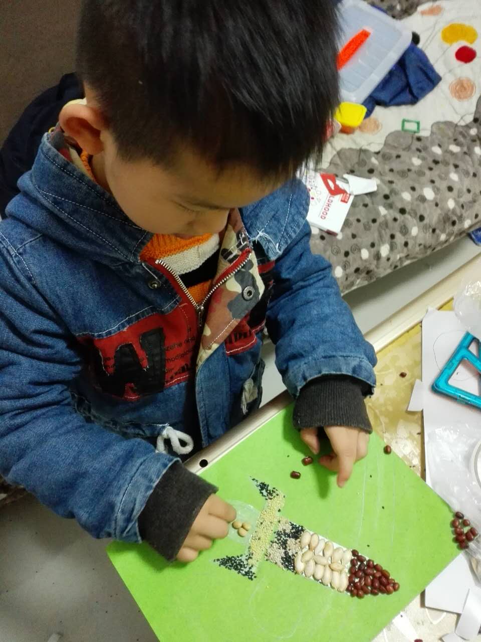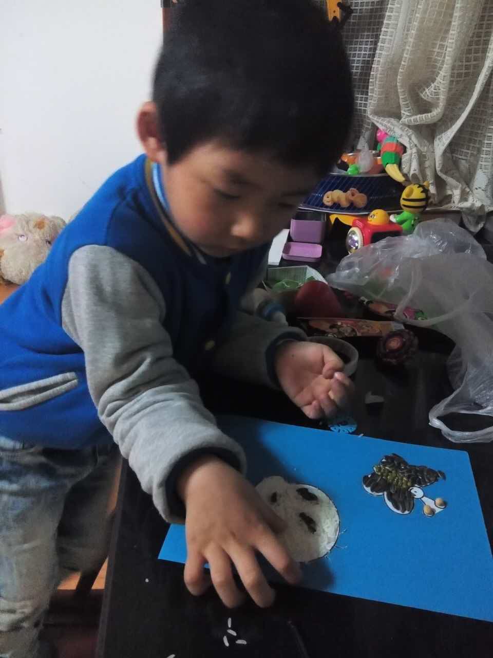 为了培养孩子的观察力、想象力和创造能力,提高孩子的专注能力,促进孩子手、眼、脑的协调发展,近日,我班幼儿在家与父母一起制作了“种子粘贴画”的亲子活动,让幼儿学习用各种种子如黄豆、花生、瓜子等,进行拼贴作画。 家长和孩子们积极配合收集了绿豆、玉米、芝麻、瓜子等各种各样的种子,在活动中家长和孩子一起分工合作、耐心粘贴,有的用西米粘成天鹅的样子,用红豆铺底衬托天鹅;有的用红豆、黄豆等豆子做成蝴蝶的样子;还有的用上了瓜子以及大米等装饰成了小兔、小猫、小吊车等等、、在大家的通力合作下,一幅幅创意十足、色彩斑斓的作品呈现在我们眼前,令人耳目一新。作品墙似乎成了一道靓丽的风景线,吸引了来自各班的小朋友和老师的目光,大家都对作品赞不绝口!本次活动不仅让孩子们认识了各种植物的种子,锻炼了他们的动手动脑能力,而且还让孩子们充分体验了亲子创作过程中的乐趣和成功后的自豪。