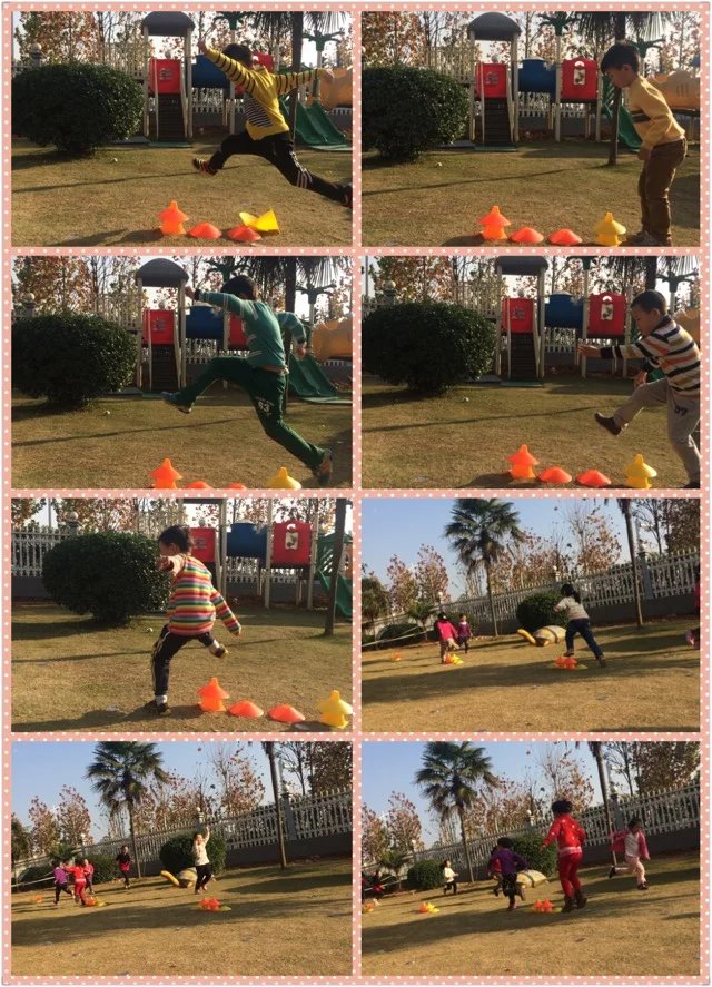 体育是促进身心健康发展最主动、积极地手段,对幼儿活泼、开朗性格的形成有着积极作用。幼儿一日活动中安排了丰富多彩的户外游戏和体育活动,培养幼儿参加体育活动的兴趣和习惯,增强体质,提高户外体育活动效率。 兴趣是孩子们学习的动力,本周大班体能健康活动,小虎老师对孩子们进行跑,跳,跨的能力进行了练习,跨越障碍过程中,部分幼儿对障碍产生恐惧,在练习中小虎都会及时给予指导与鼓励,帮助幼儿战胜恐惧,增强跨越障碍物的自信心。瞧瞧!我们的宝贝玩的多开心!跳跃的动作是不是很帅呢?